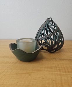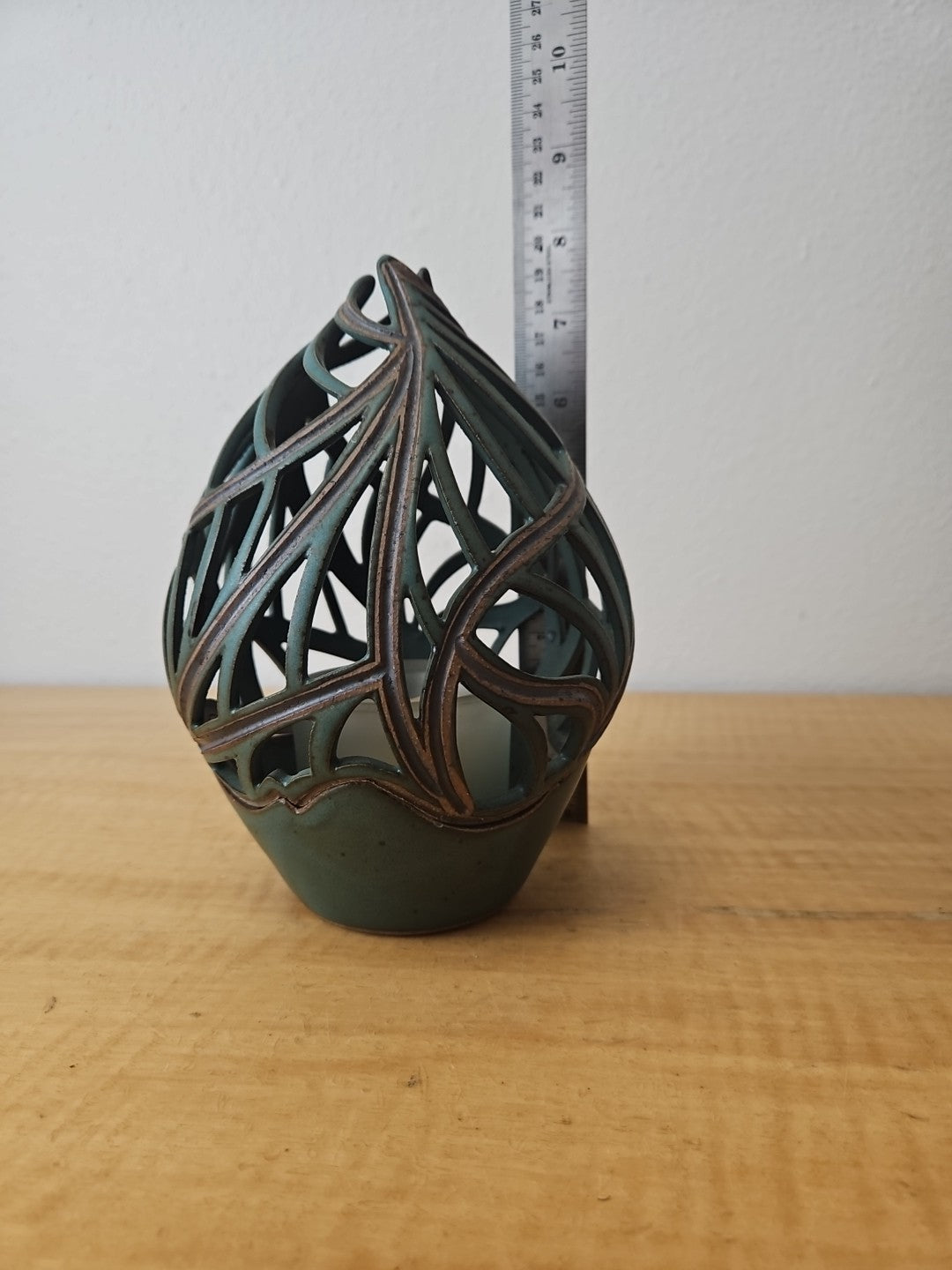 Pixton Signed Studio Art Pottery Carved Lantern Candle Holder 7″