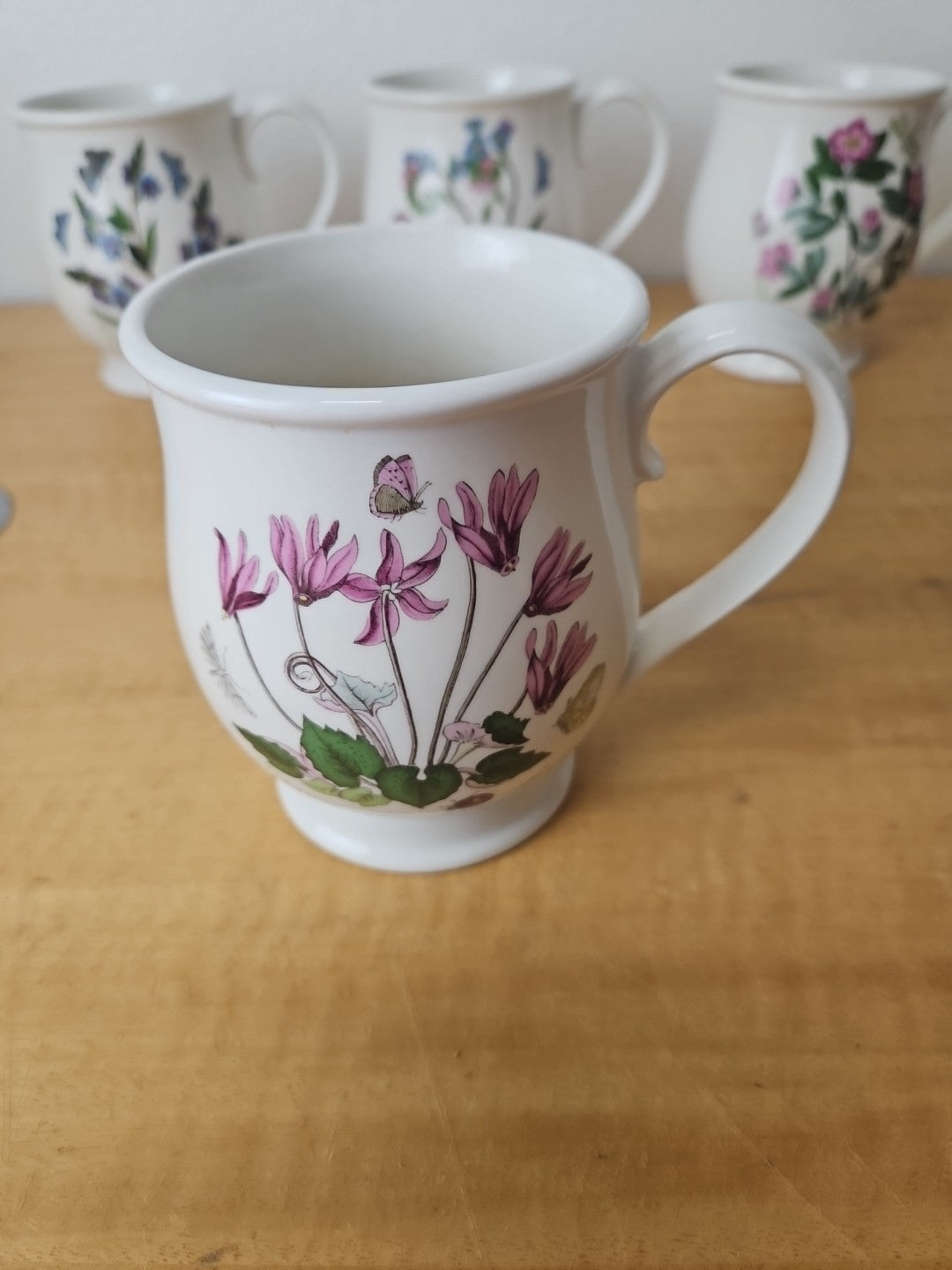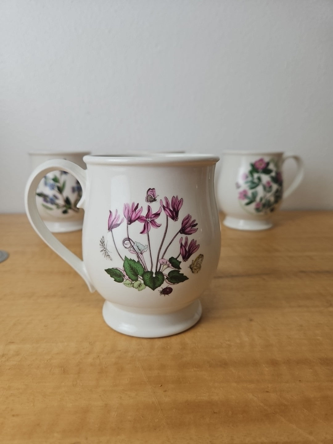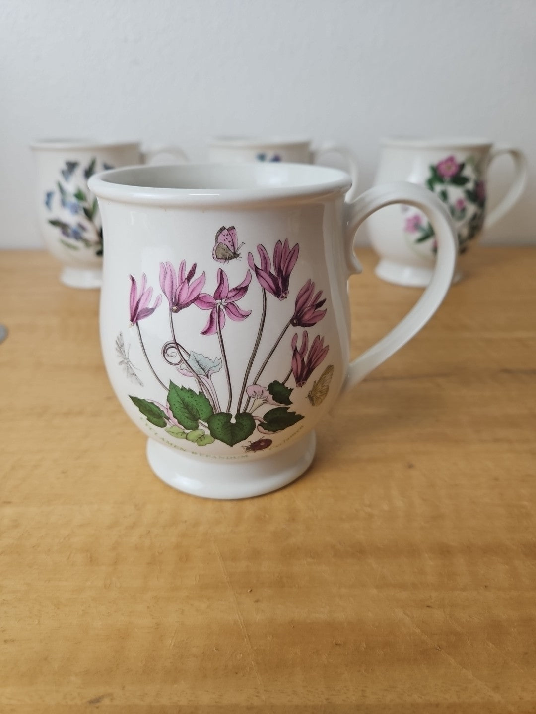 PORTMEIRION Botanic Garden Barrel Shaped Coffee Mug ~ Cyclamen Repandum