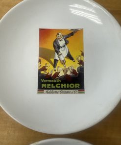Pottery Barn Vintage Cocktail Poster Martini & Rossi Vermouth Plates Set 8 1/4″