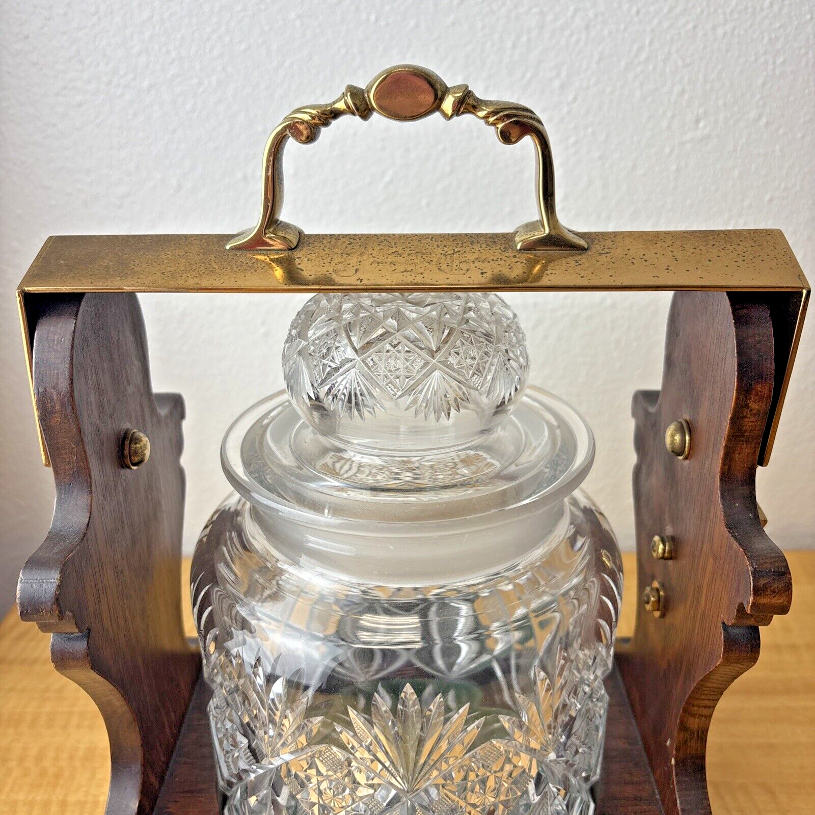Condition Description: There is a chip in the glass as seen in the images. There is no key, but the tantalus is moveable by shifting down the key slot. See images, ask questions.