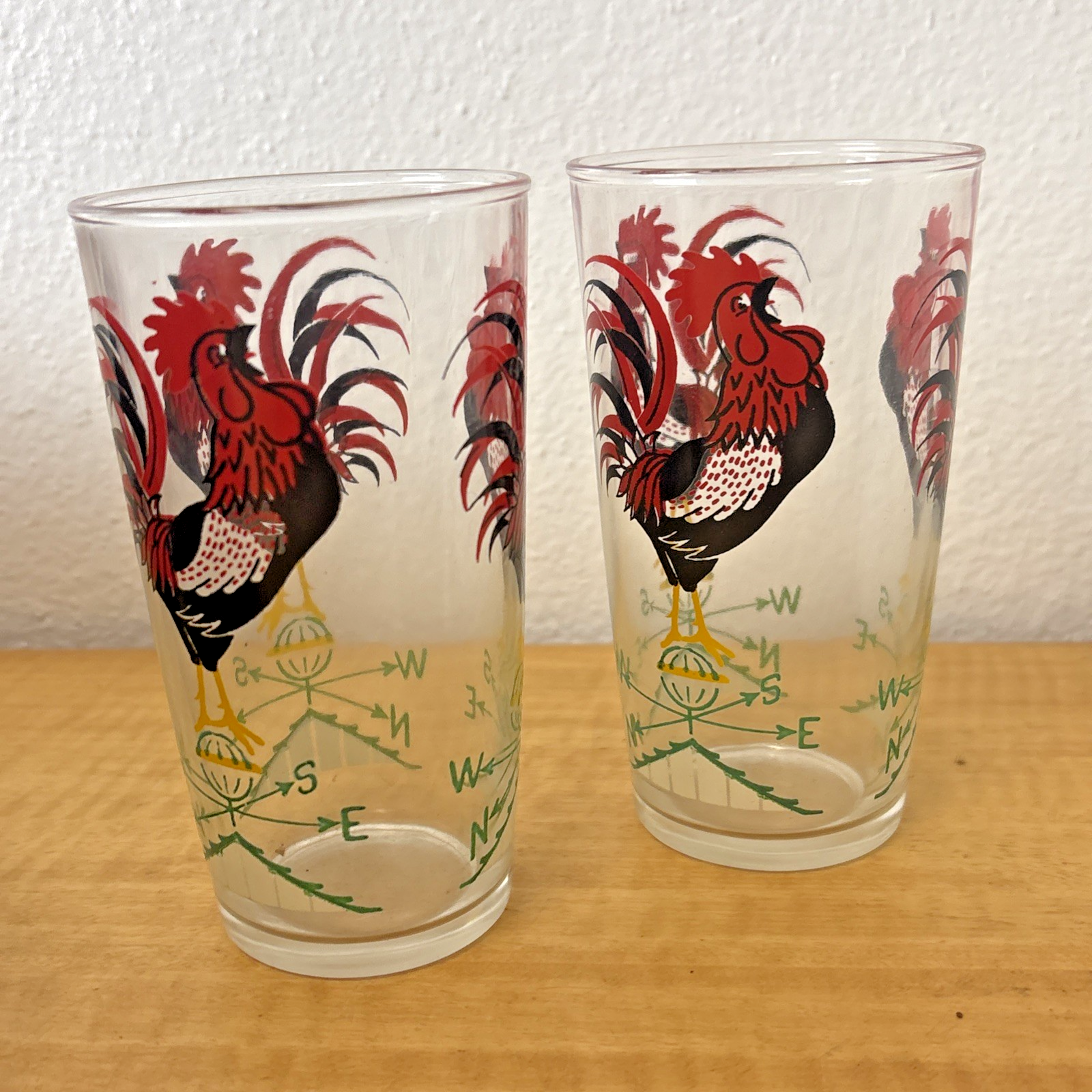 Red Crowing Rooster Weather Vane Tumblers Glasses 10oz Set of 2