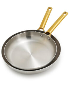 A perfect pairing of innovative design and superior performance, this frypan set features both a 10″ and 12″ pan, each made from premium stainless steel for outstanding durability and heat distribution. From quick weeknight dinners to more intricate cooking techniques like browning and oven finishing, this set delivers professional-quality results with ease.