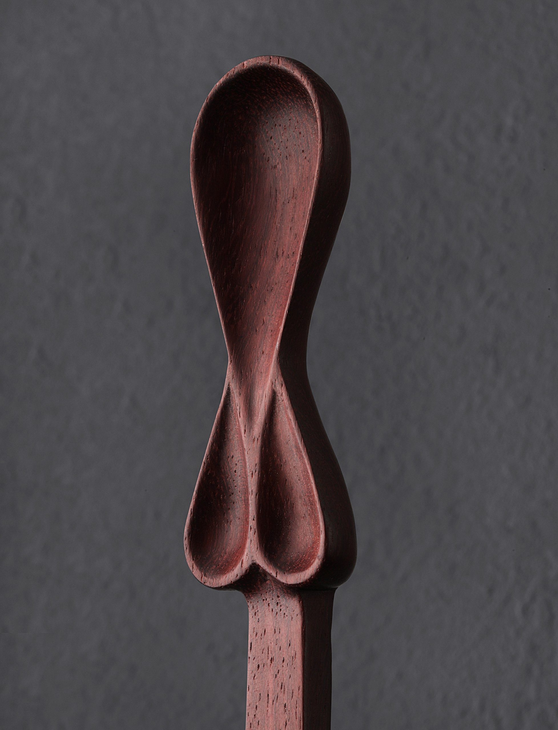 Human presence incapsulated in a wooden spoon, that’s the impression we get from work of the talented Terry Widner, who hand carved this unique and beautiful spoon from purpleheart wood. It’s communicating the language of creativity and art through a simple, smooth, straight handle that turns into three rounded openings, reminiscent of a human form in a distant, yet a very familiar way. This spoon will make any scooping kitchen task a more satisfying and exciting endeavor.