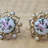 Scroll Glass Candle Holders Amber Orange Art Deco set of 2