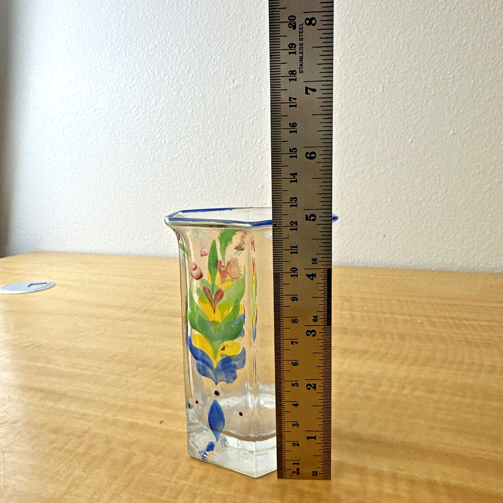 SEA Glasbruk of Sweden Hexagon Hand- Painted Flowers Vase 5″x3 Signed