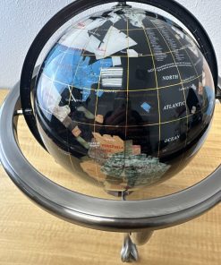 Condition Description: The Gemstone Globe measures approximately 14″ tall x 12 1/2″ wide with the actual globe having a diameter of around 28″. It weighs about 10lbs as well.The stones that make up the globe are Leopard Skin, Red Aventurine, Rich Jade, Mookaite, Oil Jade, Rhodonite, Yellow Jade, Green Spot, Picture Jasper, Red Brick, Mop, Aventurine, Brass Stones, Verdite, Red Jasper, Turquoise, Unakite, and Titoni Spot. Blue Lapis is the stone used for the seven oceans.