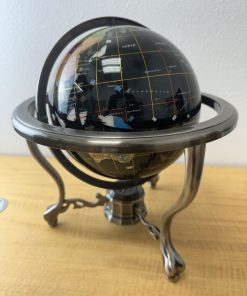 Condition Description: The Gemstone Globe measures approximately 14″ tall x 12 1/2″ wide with the actual globe having a diameter of around 28″. It weighs about 10lbs as well.The stones that make up the globe are Leopard Skin, Red Aventurine, Rich Jade, Mookaite, Oil Jade, Rhodonite, Yellow Jade, Green Spot, Picture Jasper, Red Brick, Mop, Aventurine, Brass Stones, Verdite, Red Jasper, Turquoise, Unakite, and Titoni Spot. Blue Lapis is the stone used for the seven oceans.
