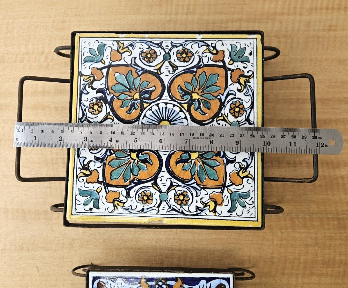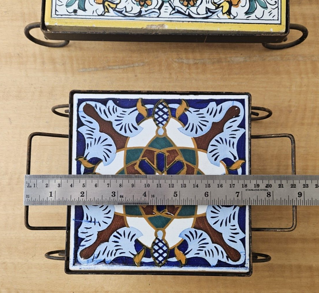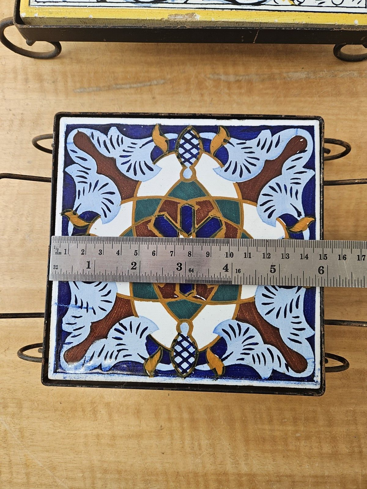 Set of 2 Spanish Tile Trivet On Metal Stand Made in Spain