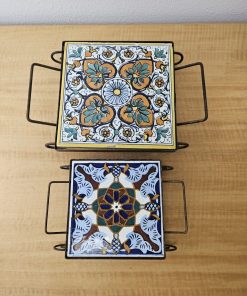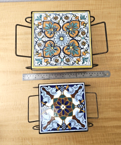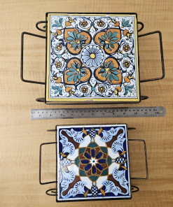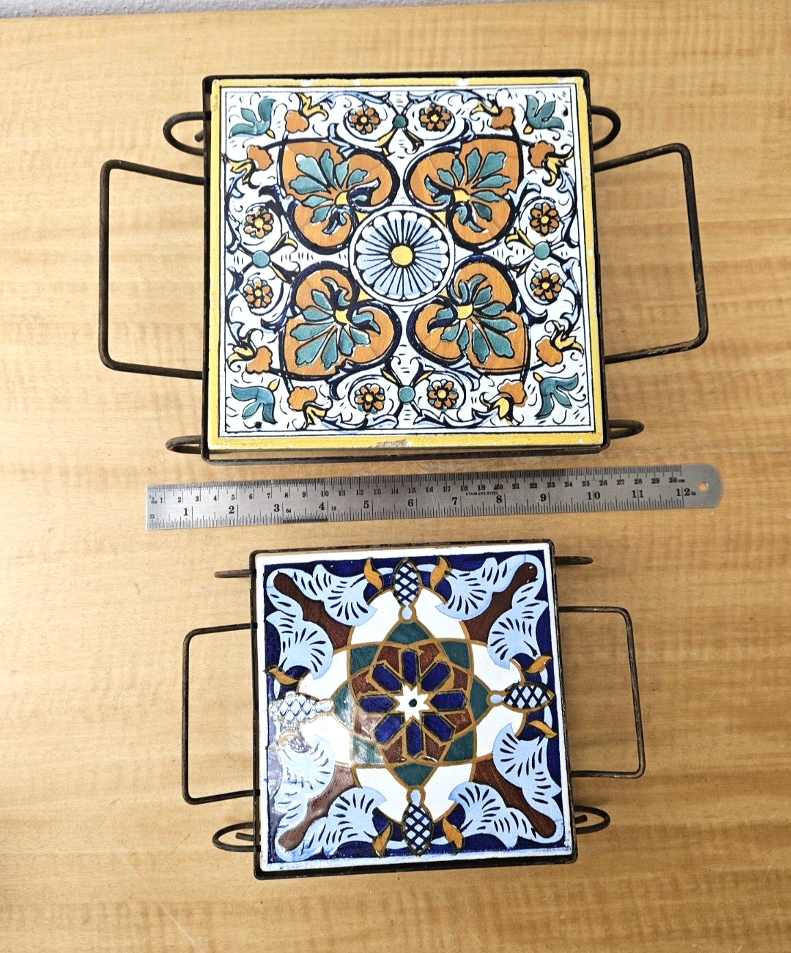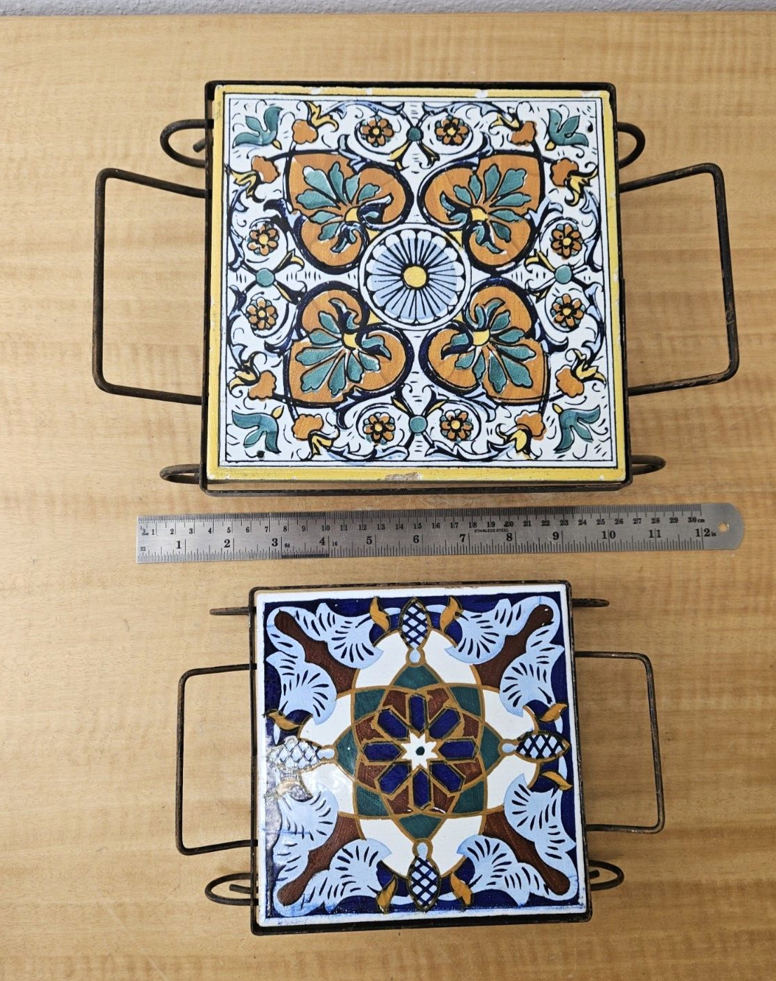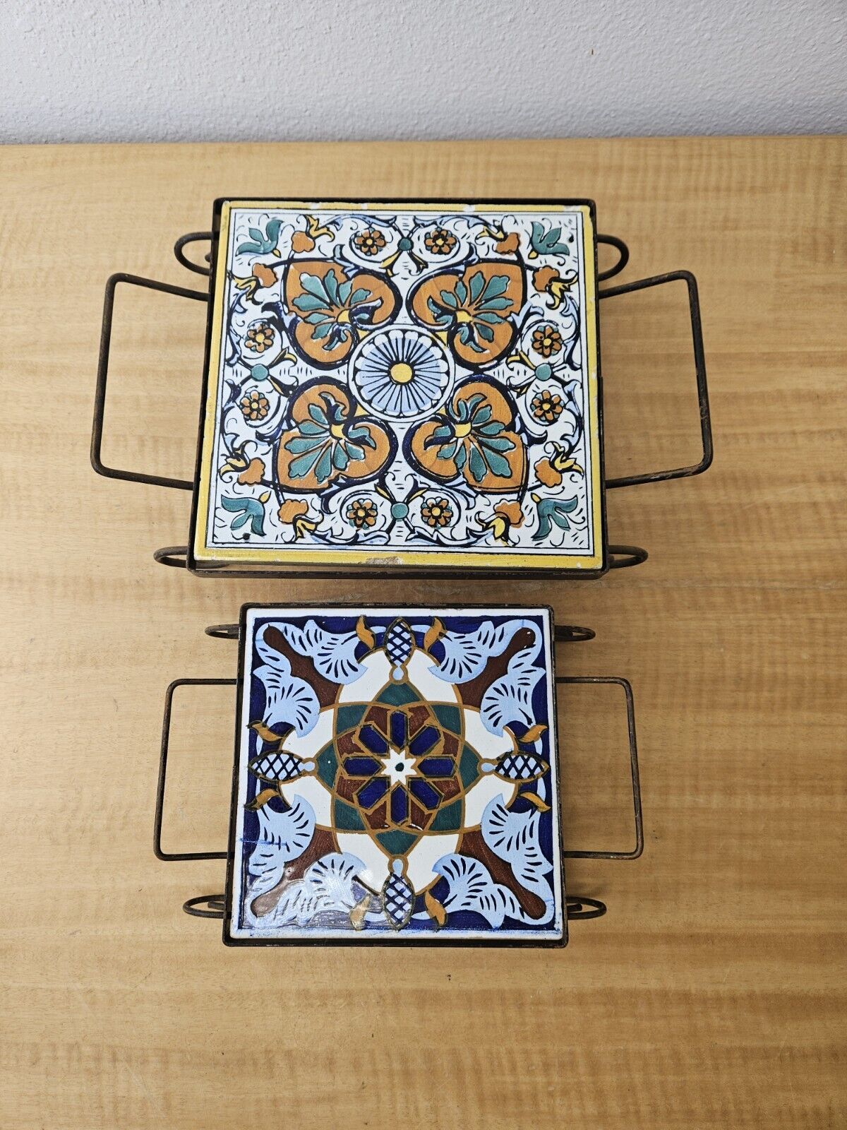 Set of 2 Spanish Tile Trivet On Metal Stand Made in Spain