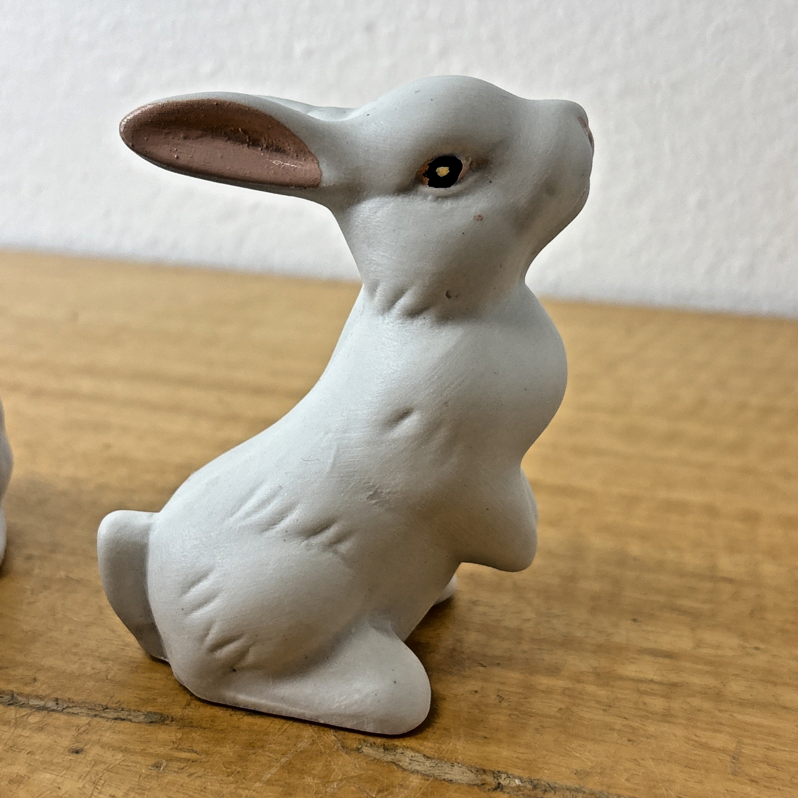 Set of 3 Ceramic White Bunny / Bunnies Pink Nose