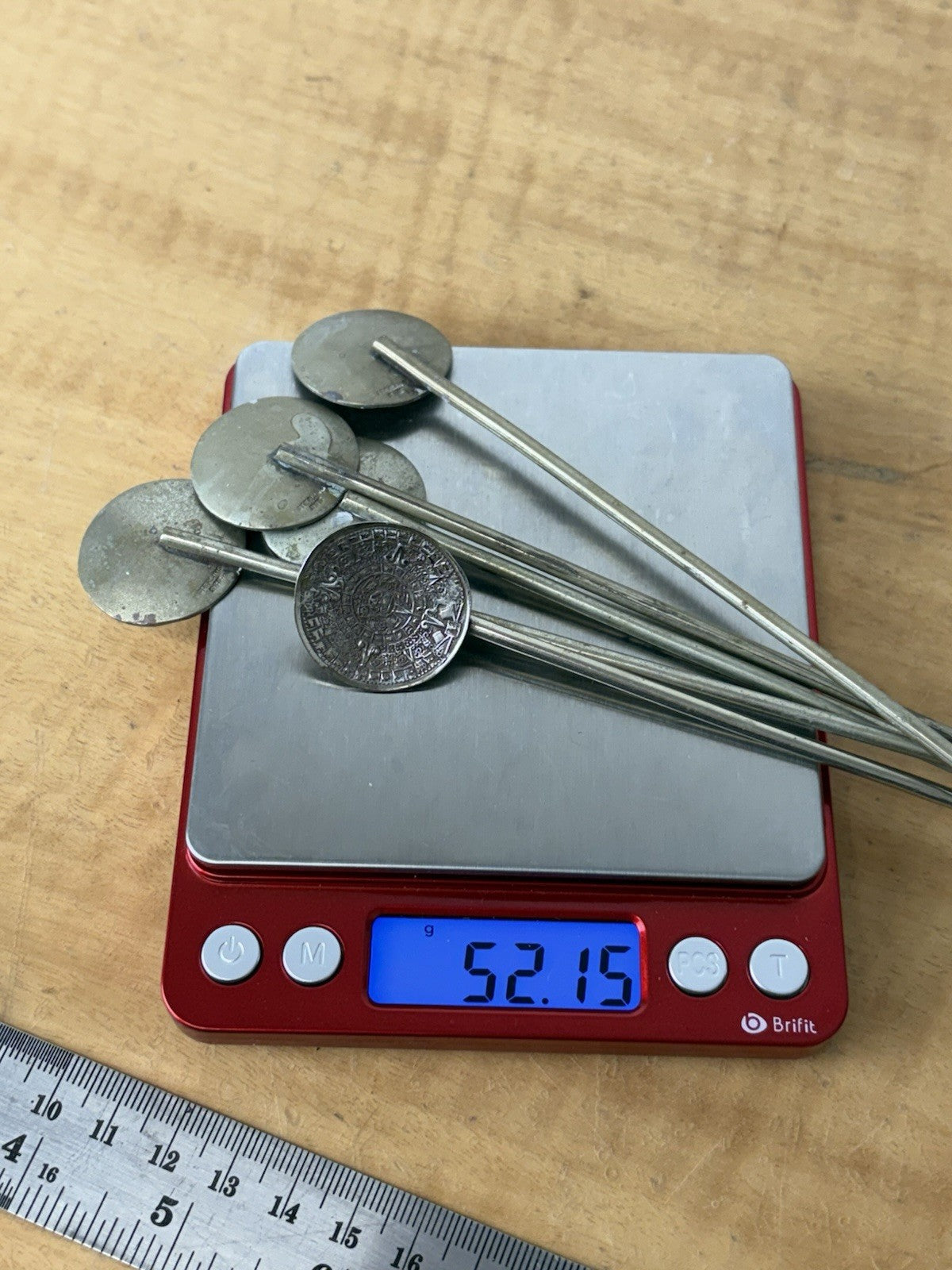 Set of 5 Sterling Silver .925 Aztec Calendar Drinking Straws