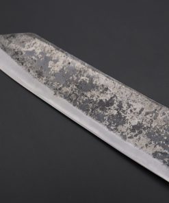 One of our knife experts, who has used and owned Tamahagane knives, stated although Tamahagane steel knives has several demerits —Such as being very prone to discoloration and rust, and not reaching the same Rockwell hardness as popular Japanese carbon steels (e.g. White Steel No.2, Blue steel No.2 and Aogami Super)— he personally felt Tamahagane knives have their own unique appealing warmth and spirit, and their own ‘mysterious’ cutting power. Even though our knife expert is very experienced, he was still very excited to spend time with the Tamahagane steel knives and sharpen them.