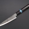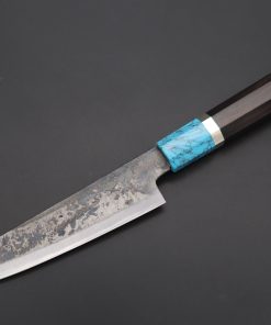 This Special Edition Wa Petty Knife with Contemporary, Stylish Wa Handle. The Innovative Octagonal Ebonywood Handle with Composite Black Color Turquoise Gemstone Ring and Nickel Silver Spacers.