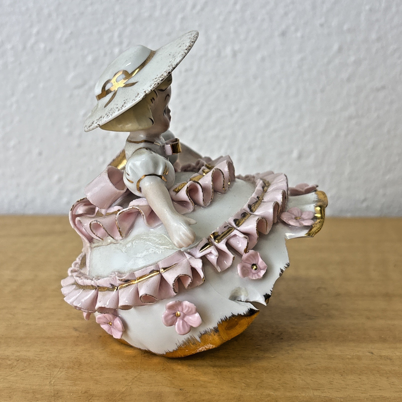 Condition Description: See images, ask questions. Large chip on skirt, glue residue on back side as seen in images.