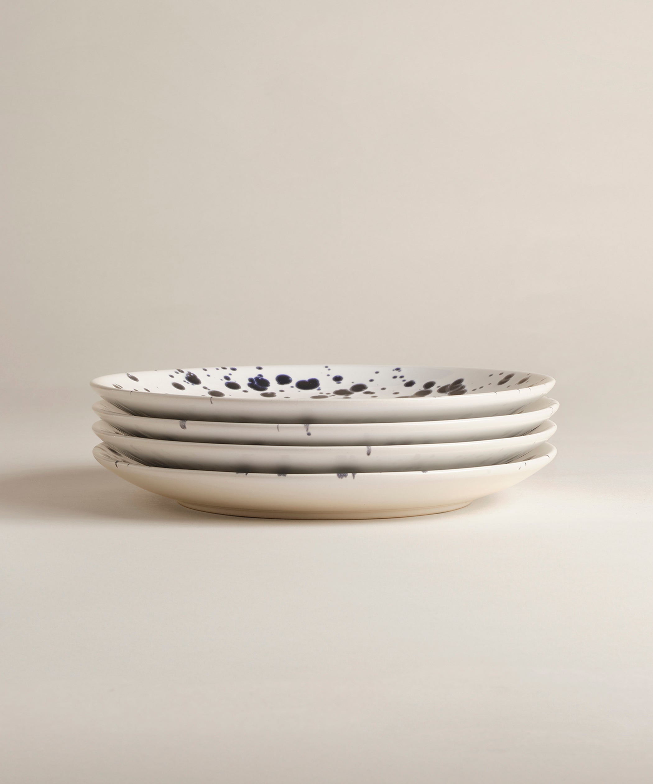 Inspired by the centuries-old Italian “schizzato” technique, The Splatter Collection celebrates the artful authenticity of the European good life. Use these for dainty piles of market greens, slices of still-warm galette, a handful of olives, or whatever small pleasure the day calls for. Designed with a rimless, coupe style; stacks beautifully with our Big Plates. Available in multiples of four.