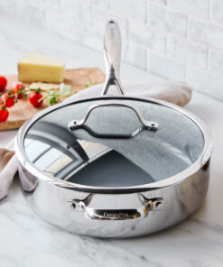 The streamlined version of Stanley Tucci’s signature pan, this 4.5-quart design is the perfect way to take on big meals. Ideal for crafting family meals or finishing pasta, this pan has a large cooking surface that’s perfect for cooking big cuts of meats, sautéing veggies, and everything in between.