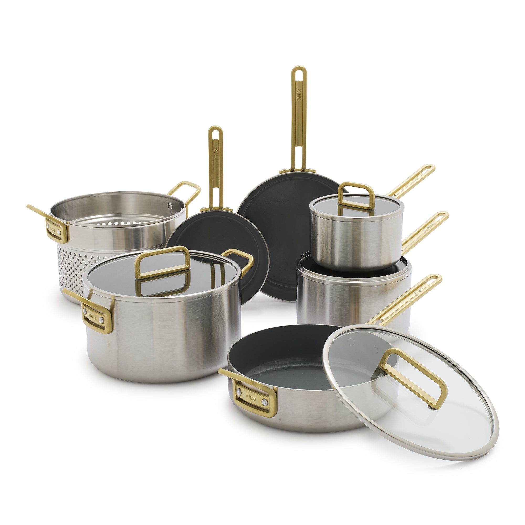 Stanley Tucci™ Stainless Steel Ceramic Nonstick 11-Piece Cookware Set | Champagne Handles