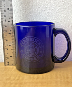 Starbucks Coffee Cobalt Blue Mug 3 3/4″ Tall Glass 12 oz Etched Mermaid Logo EC