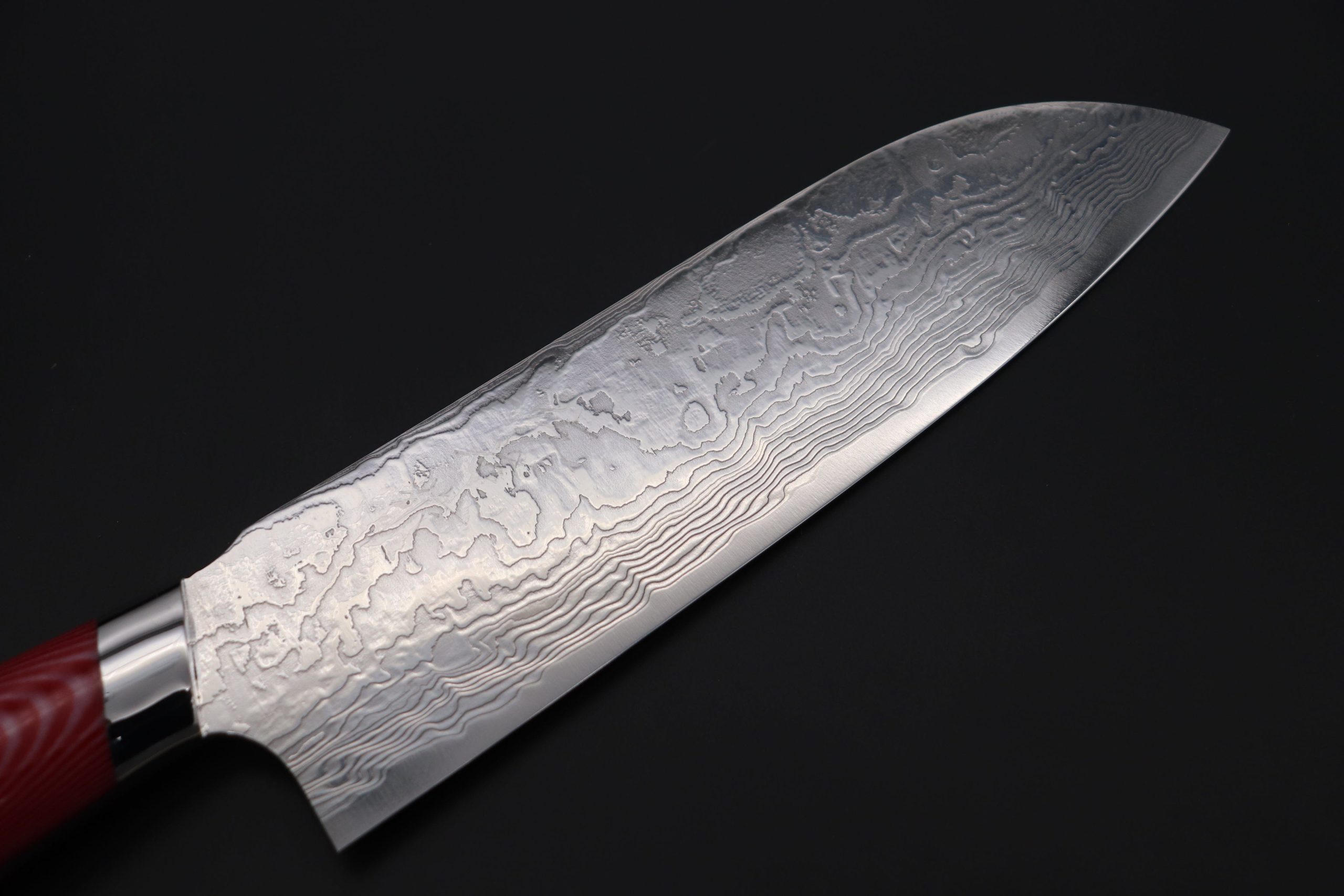 Takeshi Saji R-2 Custom Diamond Damascus Wild Series New Design SNRD-5RW Santoku175mm (6.8 inch, Red/White Linen Micarta Handle)