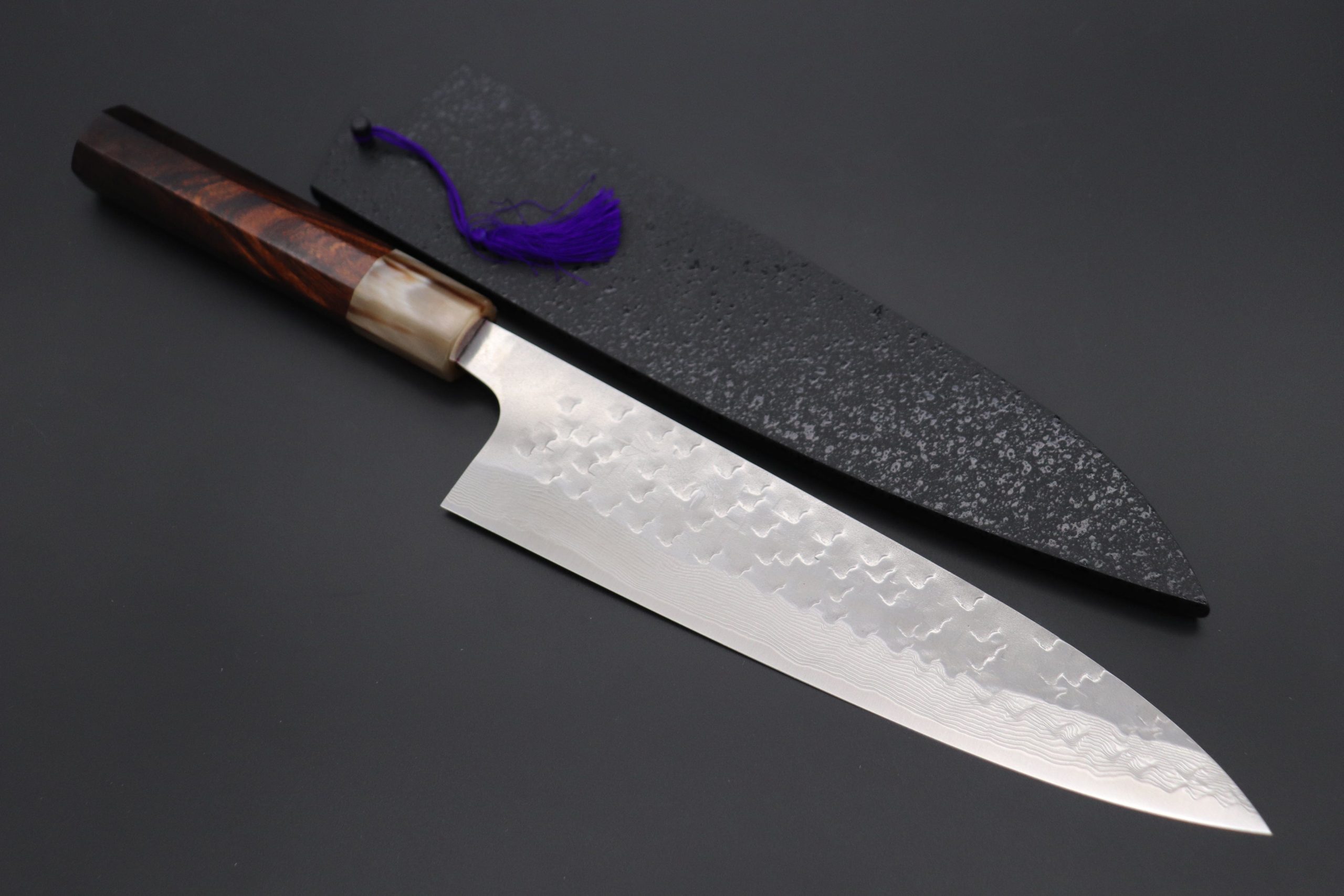 Knife Model: Takeshi Saji SUMMIT ― Limited Edition Custom Series “Ocean Sunshine” VG-10 Custom Hammered Damascus STCL-320 Wa Gyuto 210mm