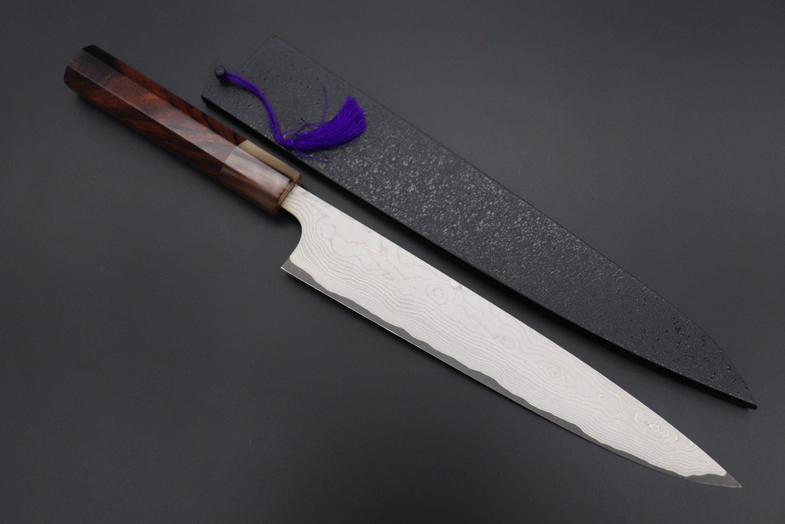 Knife Model: Takeshi Saji VG-10 Custom “Silver Color” Nickel Damascus Wa Sujihiki 240mm (9.4 Inch)