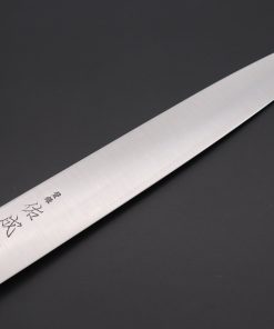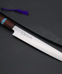 The lightweight, the long, narrow, graceful blade of the Wa Sujihiki is particularly useful for trimming away sinew and fat from meat, finely slicing meat or boneless fish, or for filleting and skinning fish. The long blade allows the meat or fish to be cut in one single drawing motion, from heel to tip.