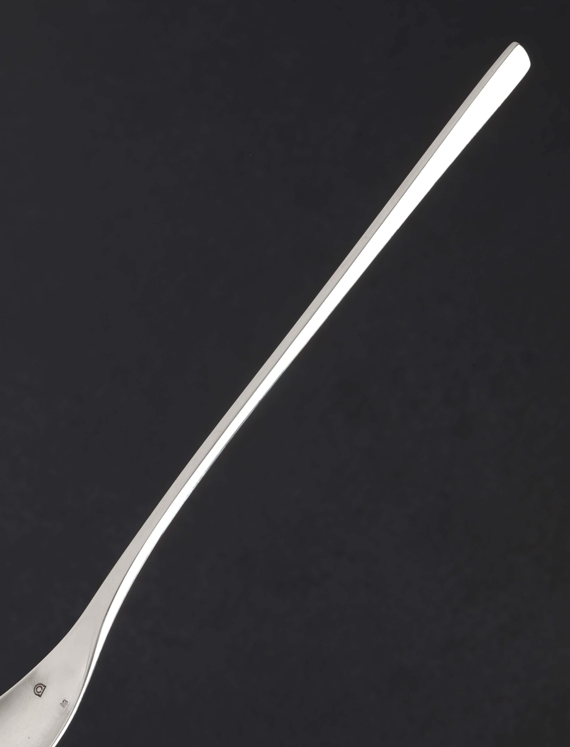 Designed, forged, and finished by the hands of silversmith Corey Ackelmire in solid 925 sterling, the Teardrop Sterling Silver Spoon represents the simple elegance of contemporary metallic artistry for the home. Corey’s hand-hewn objects are each a one-of-a-kind creation, this functional spoon combining a handle which begins with a tall, slim profile, tapering forward as it becomes square, and then slightly flattened before the material flares out to form the beautiful, curved bowl. For the bar, for serving sauces or spices, or as a dessert spoon for an unforgettable dining experience, the feel of a silver utensil in the hand is not to be missed.