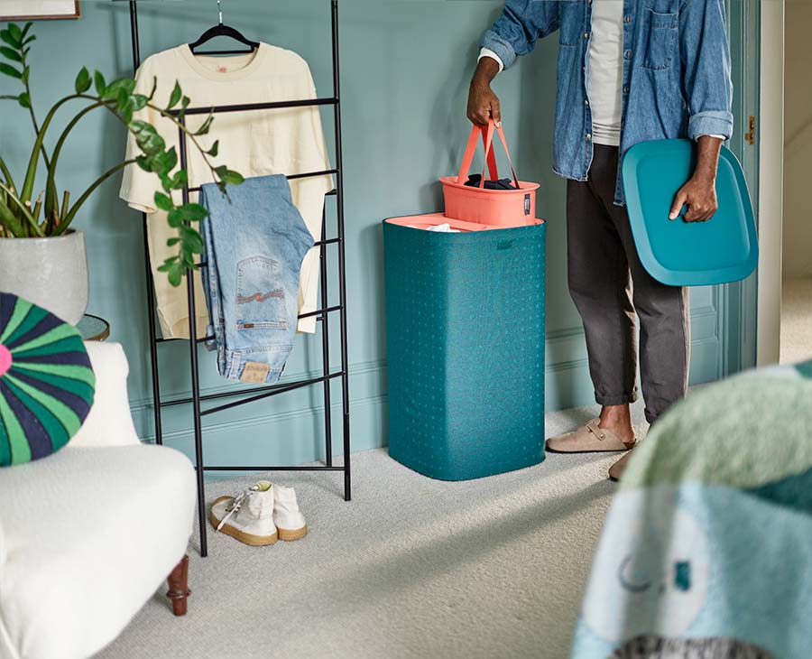 Ready to banish laundry-day blues? Meet Tota, our smart and stylish laundry basket. Designed with dual compartments and removable, easy-carry tote bags, Tota cuts down on the time and energy needed to separate clothes and carry heavy loads to the washing machine. It also looks great in the bedroom, bathroom or utility room.