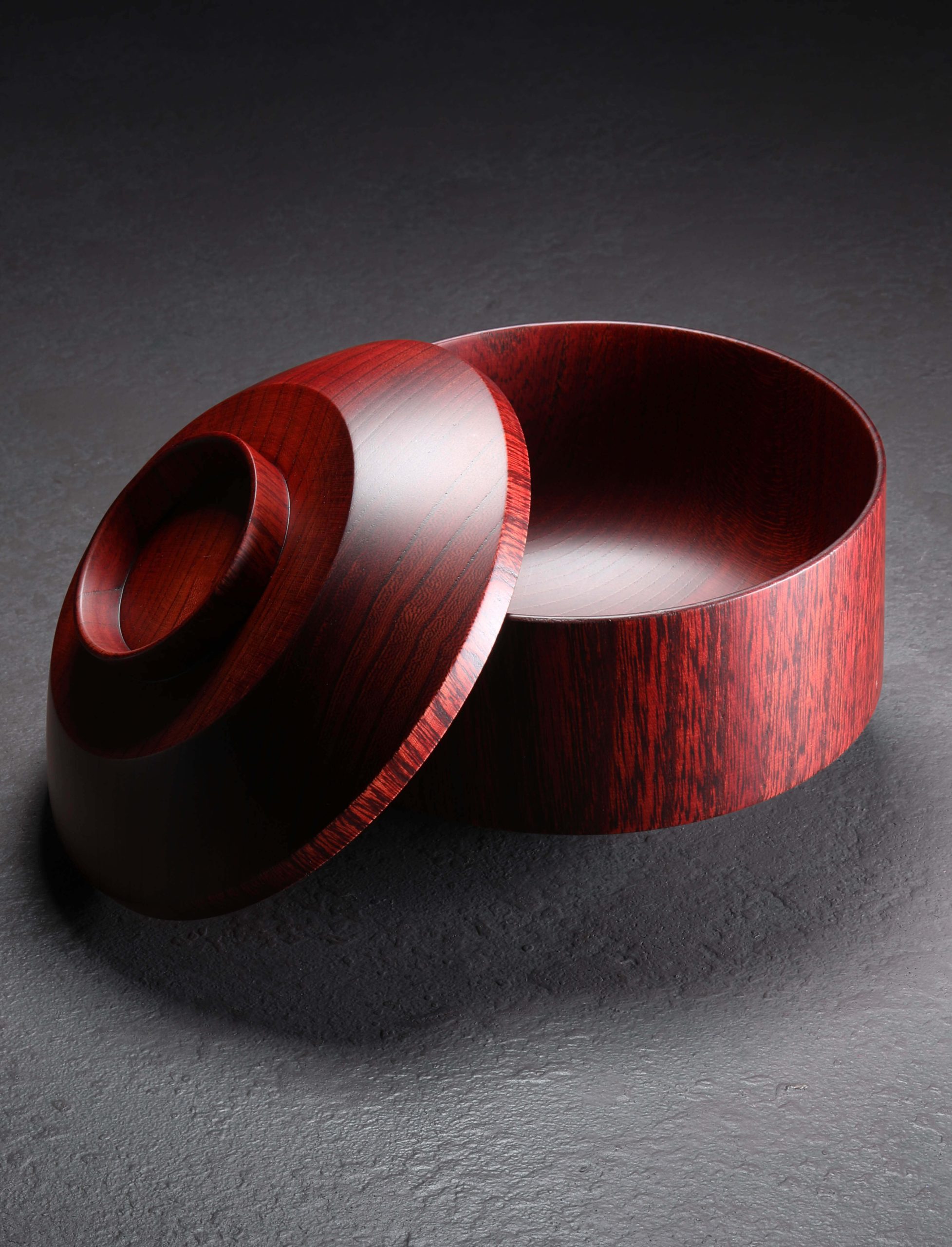 Designed by Ikumi Ishizaki, the Menoke lacquerware soup bowl is crafted from kyaki zelhova, a hardwood home to Japan and East Asia, often used in the art of bonsai. Exquisitely turned using traditional techniques that the craftspeople of this Yamanaka Prefecture have practiced for centuries, each bowl is formed from wood cut across its longitudinal grain using an approach known as tatekidori, allowing that grain to shine in beautiful fashion, and also to allow for extremely precise shaping by skilled artisans and an exacting finish of a functional object made to use daily for many years to come. At four inches high with a width of nearly five inches, this bowl is large enough for any meal and dish, sculpted in a style which has shaped Japanese food culture since ancient times.