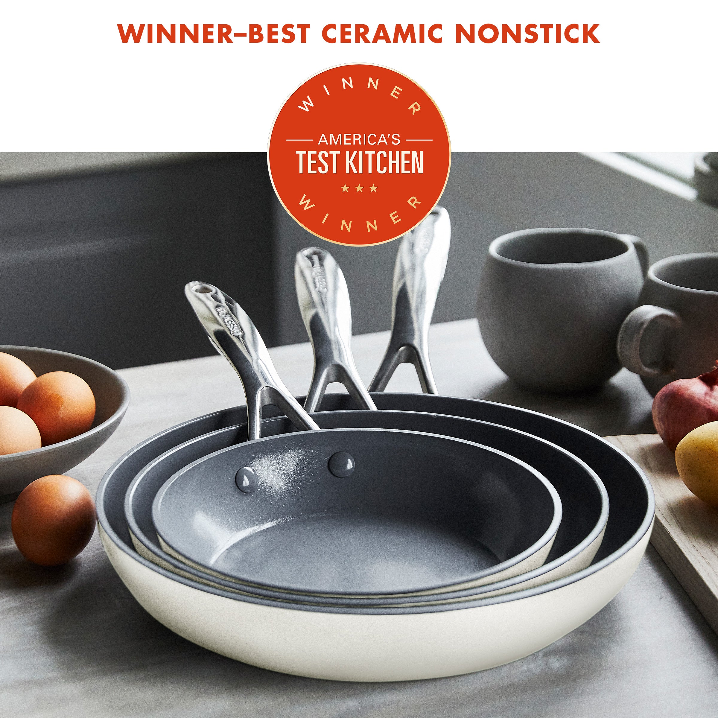 Valencia Pro Ceramic Nonstick 8″, 9.5″, and 11″ Frypan Set | Cream