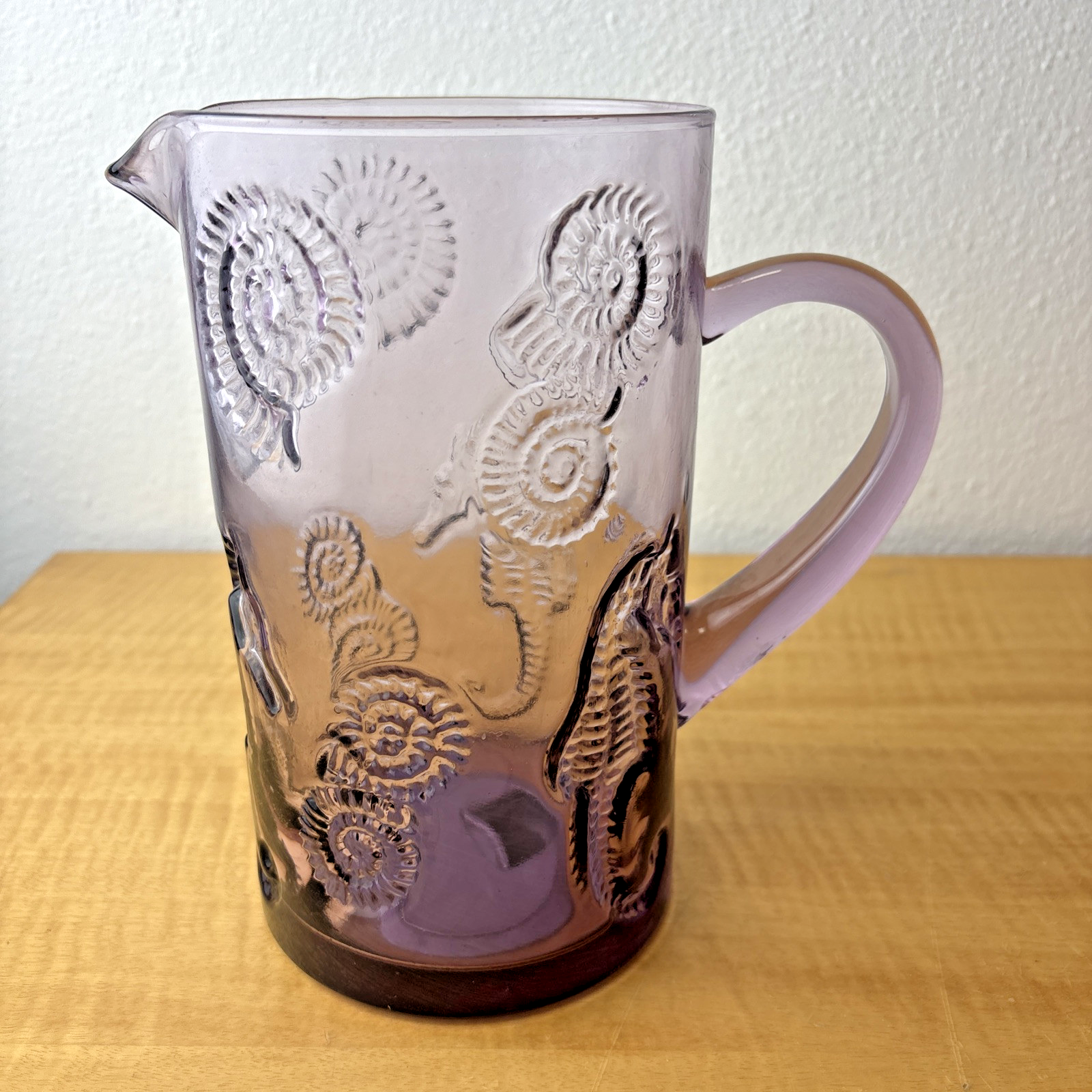 Vintage 1989 the cellar Italy Purple Glass textured Seahorse Large Pitcher