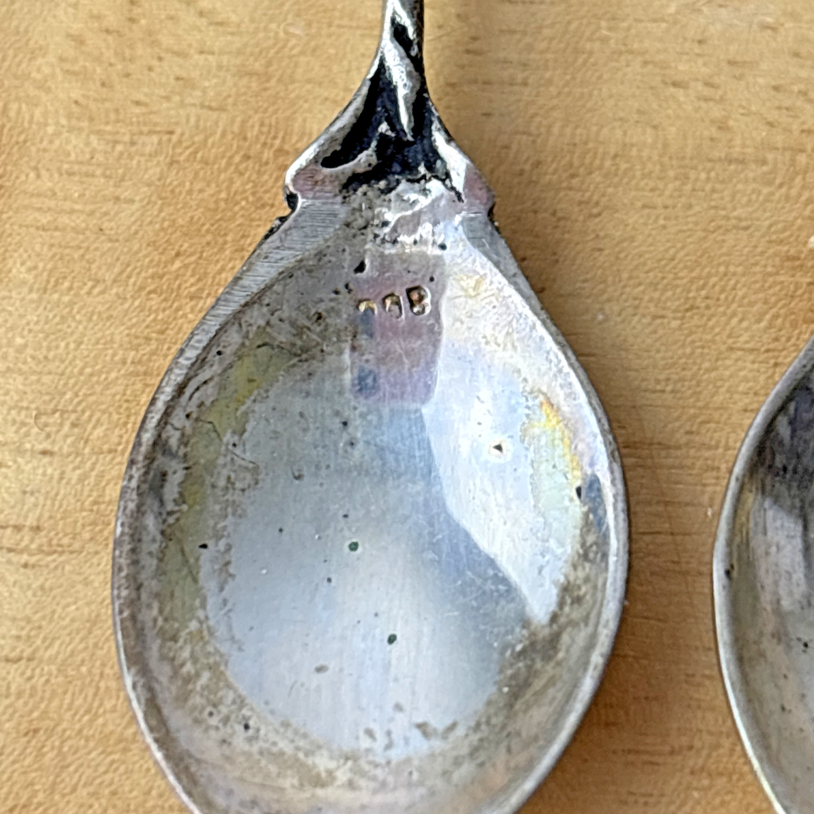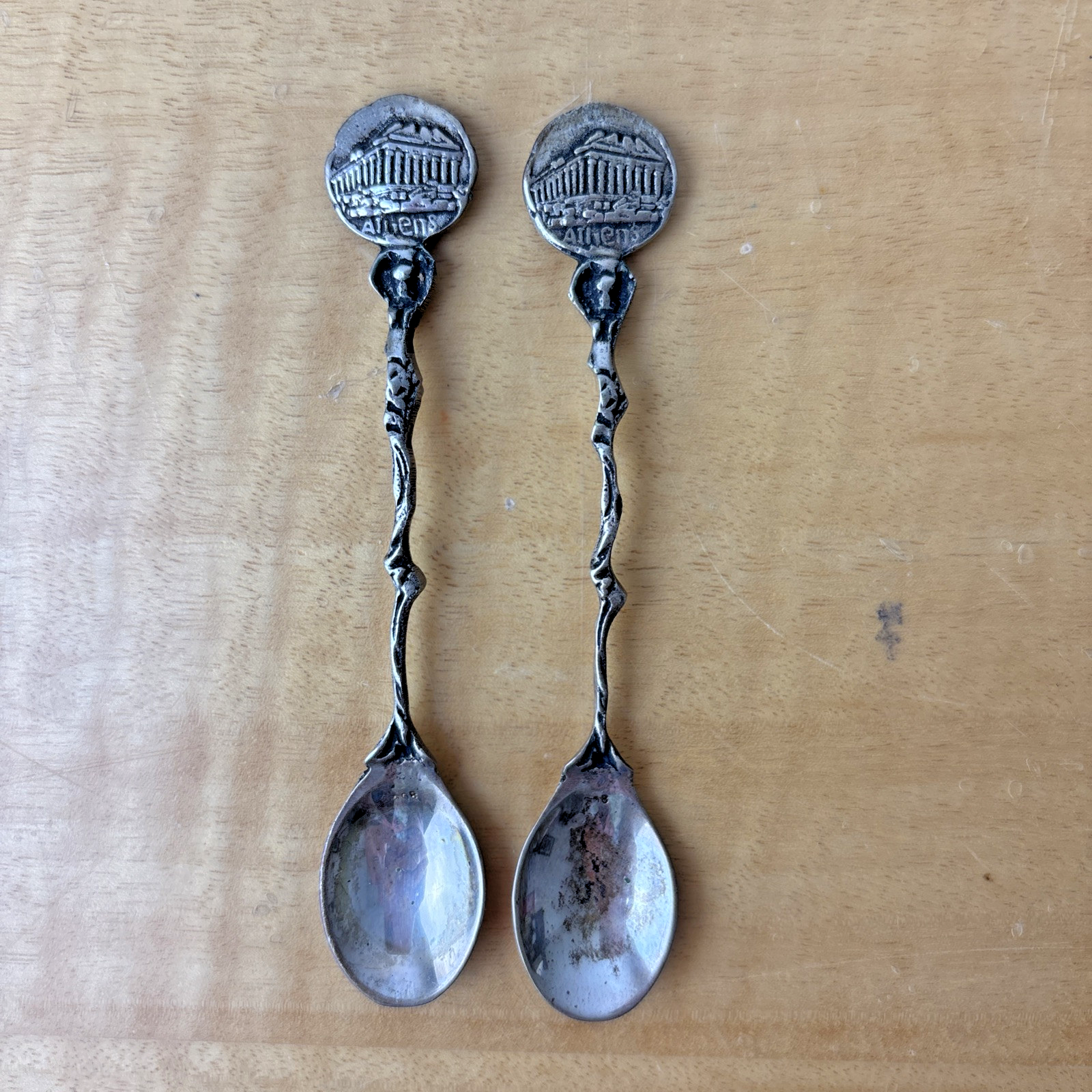 Vintage 800 Silver Small Decorative Spoon Athens Set of 2