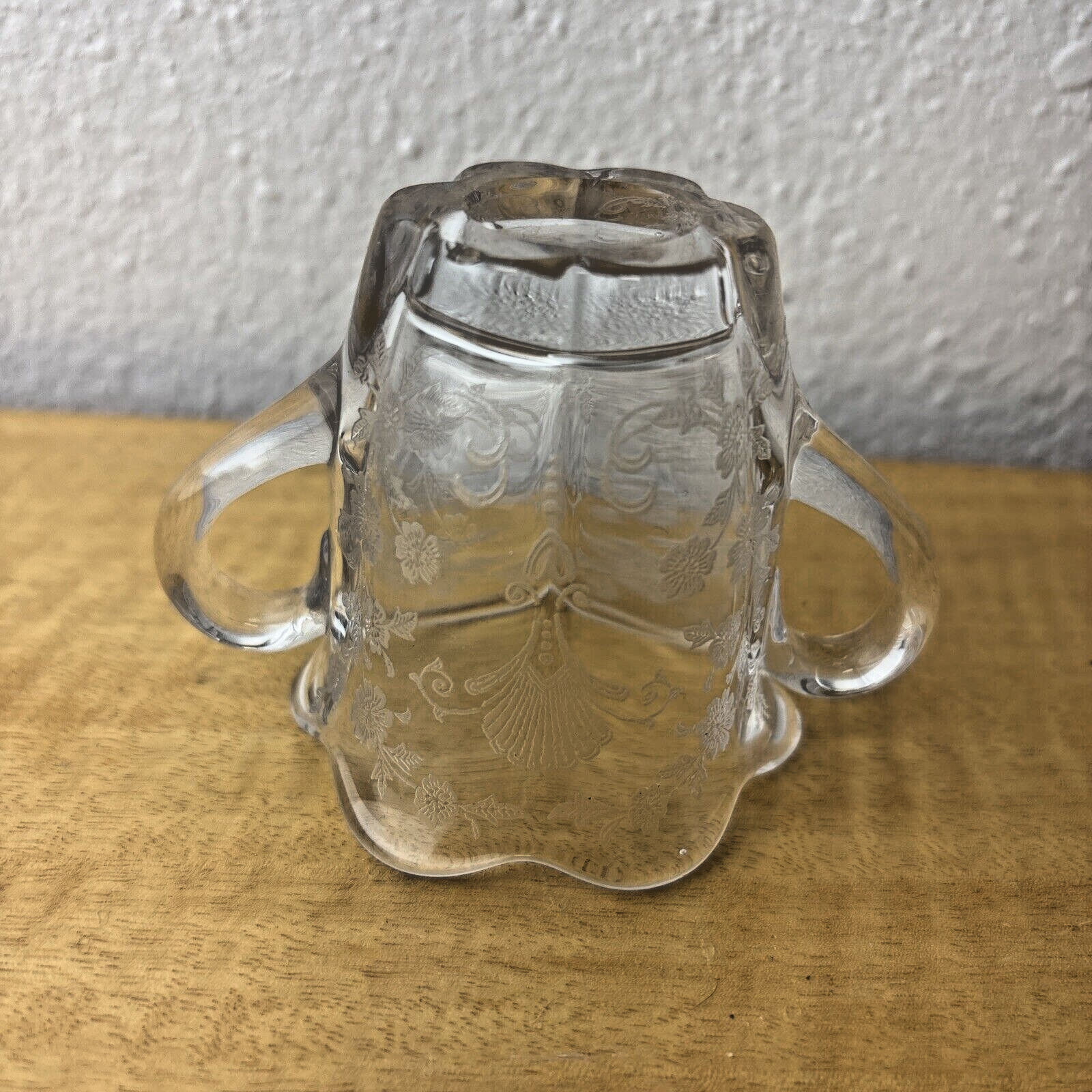 Vintage Antique Clear Etched Glass Creamer w/ Floral Decoration