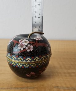 Vintage Apple Trinket box Chinese Cloisonne Flowers MCM blue interior