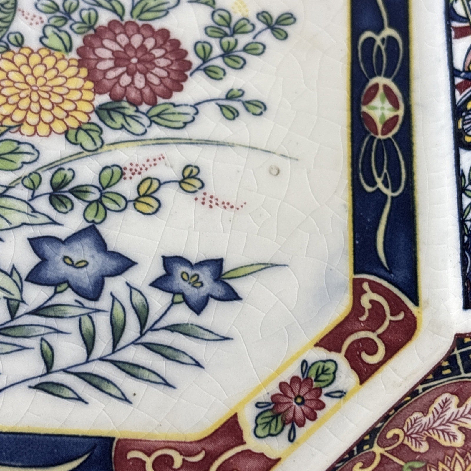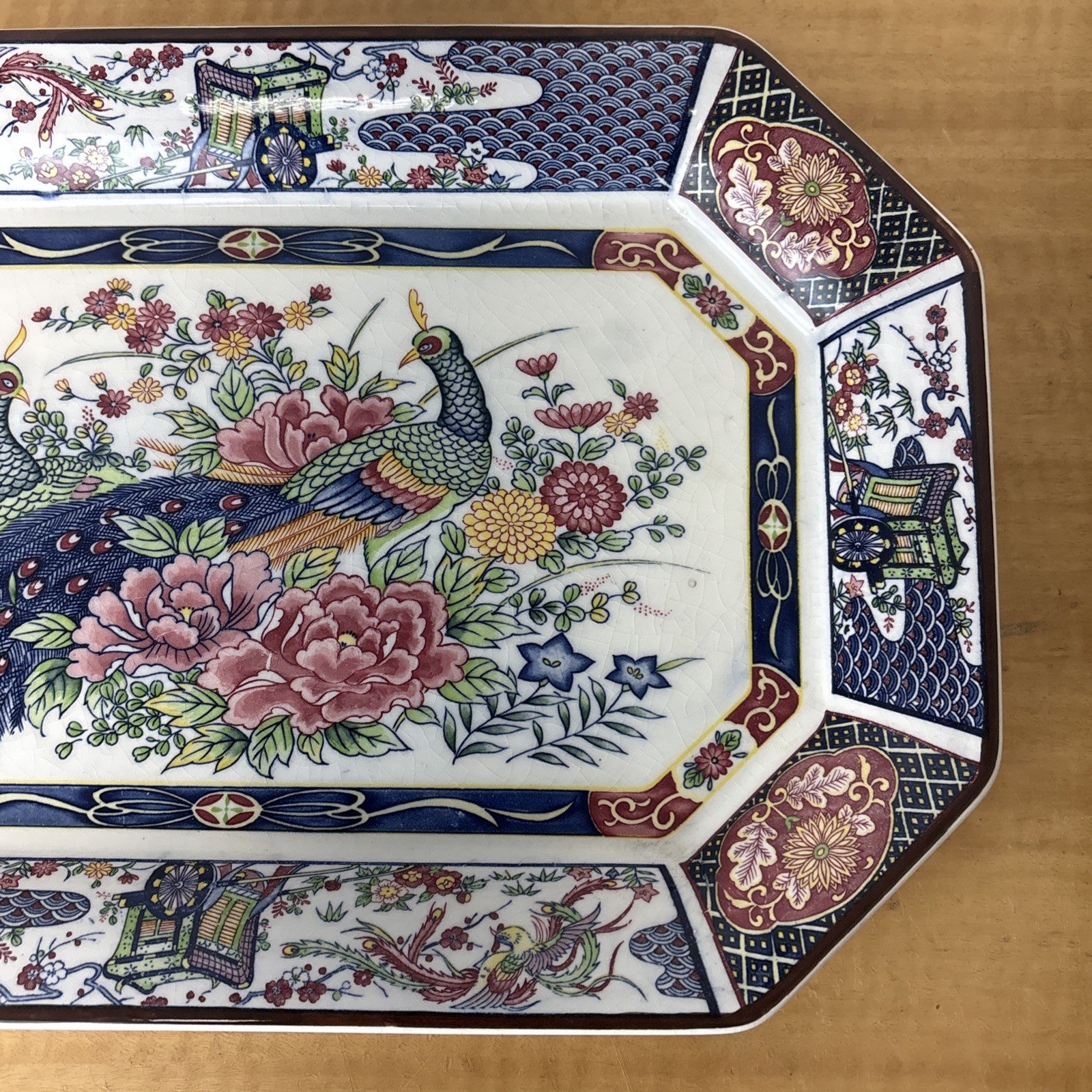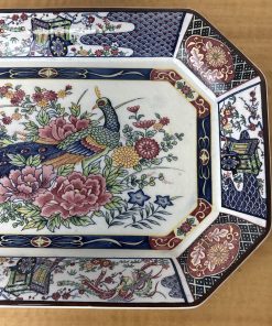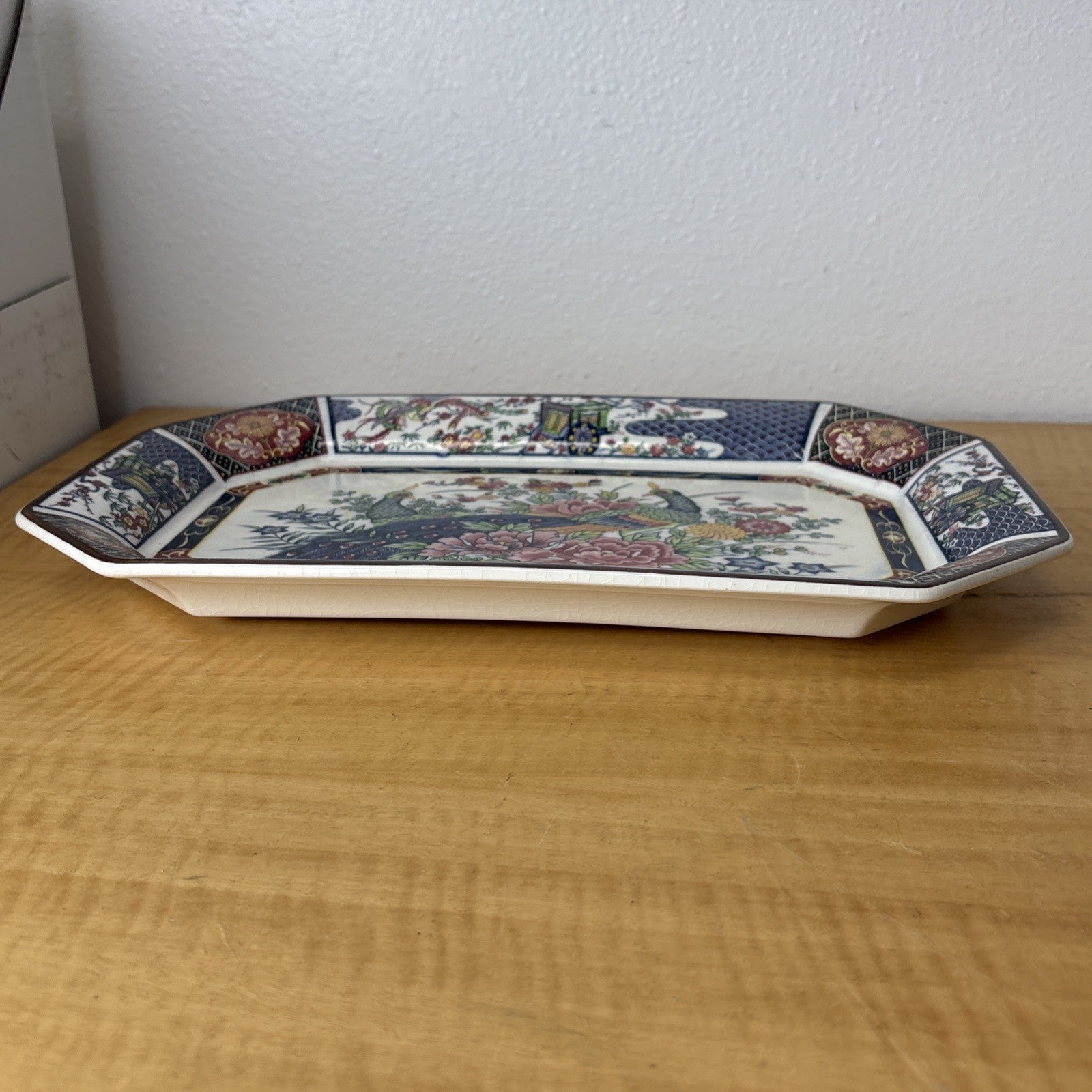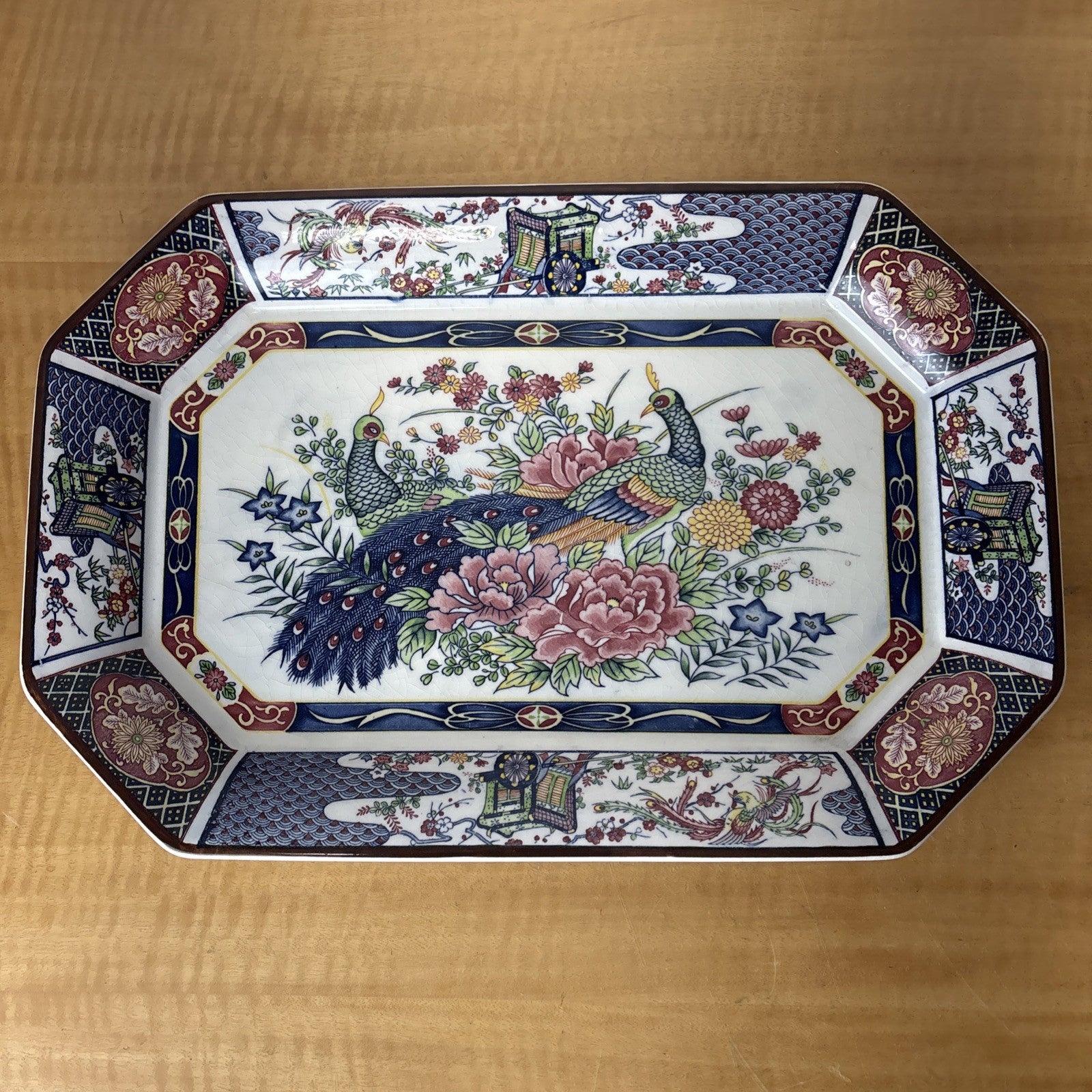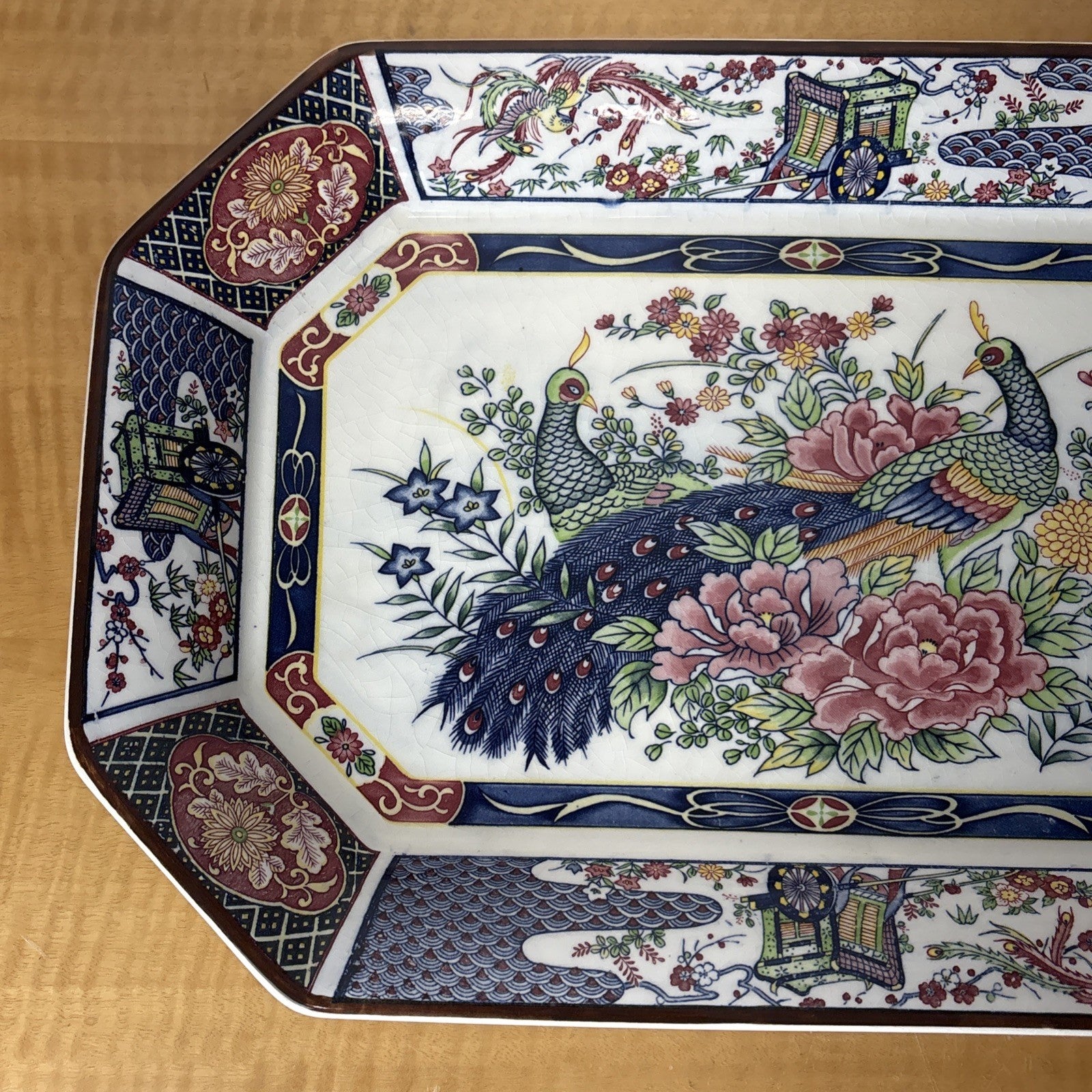 Vintage Arita Imari Japan Porcelain Platter Serving Tray Peacocks Floral 16.25″