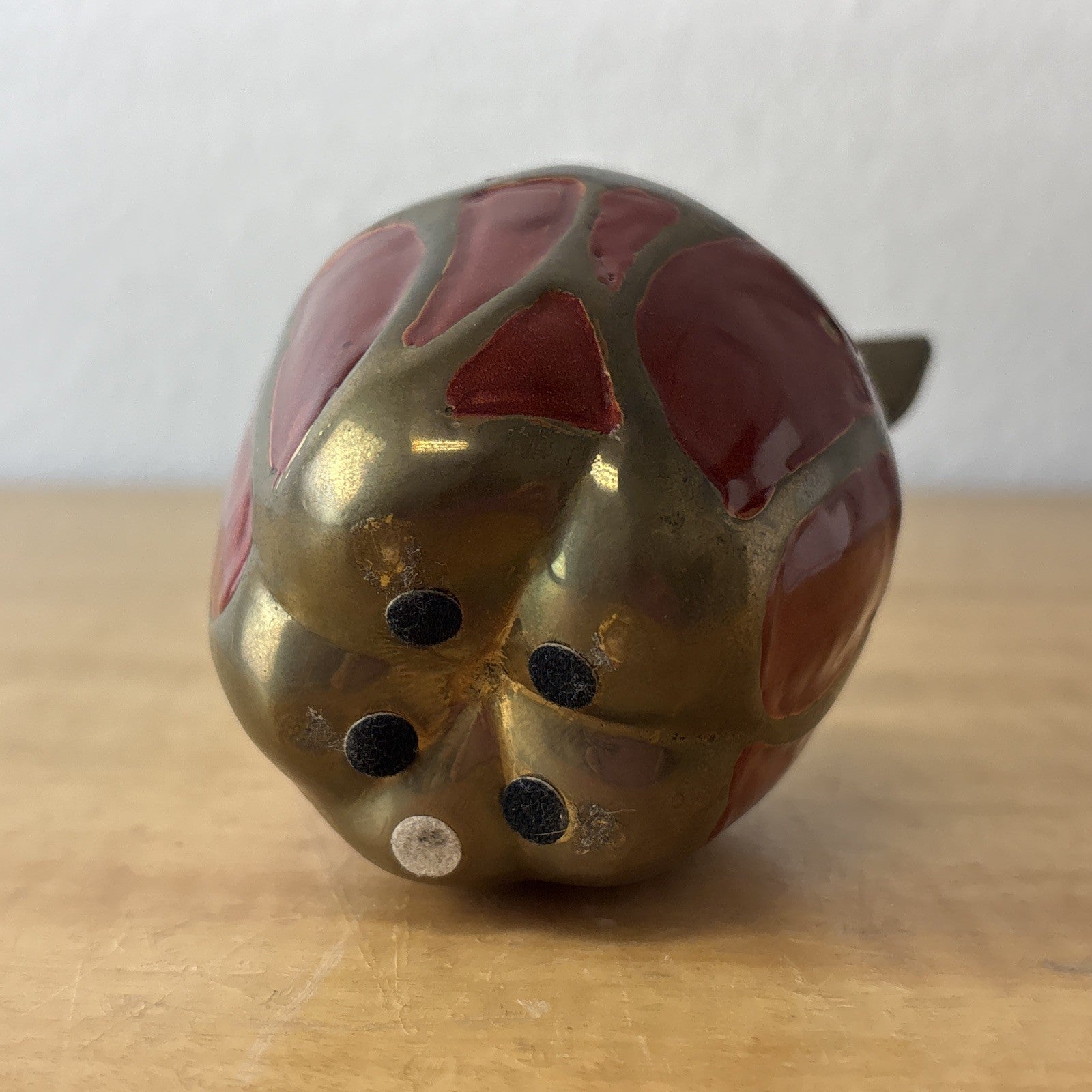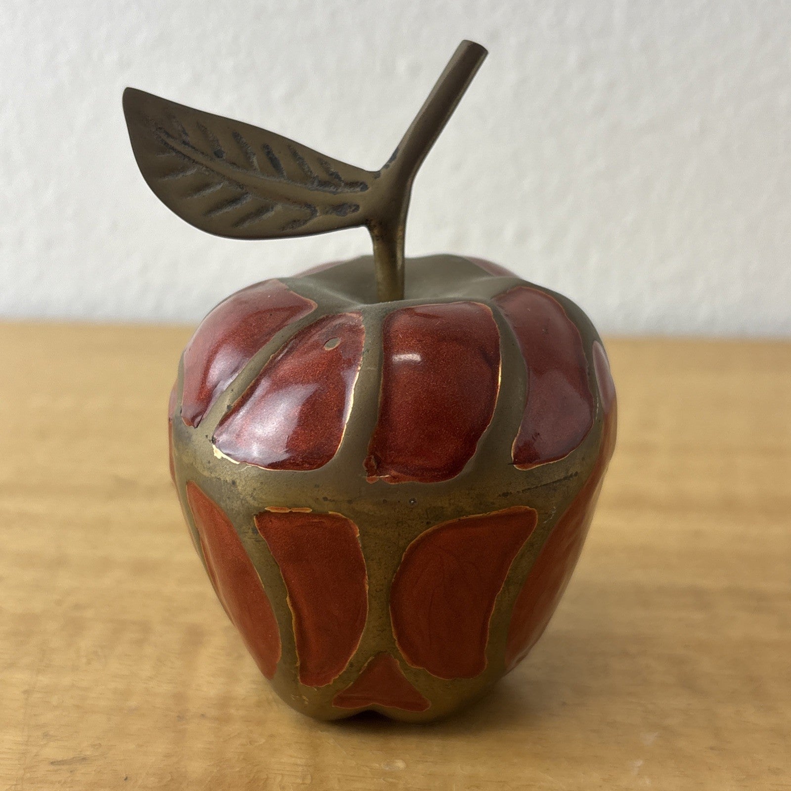 Vintage Brass & Enamel Tainted Apple Red & Gold Paperweight