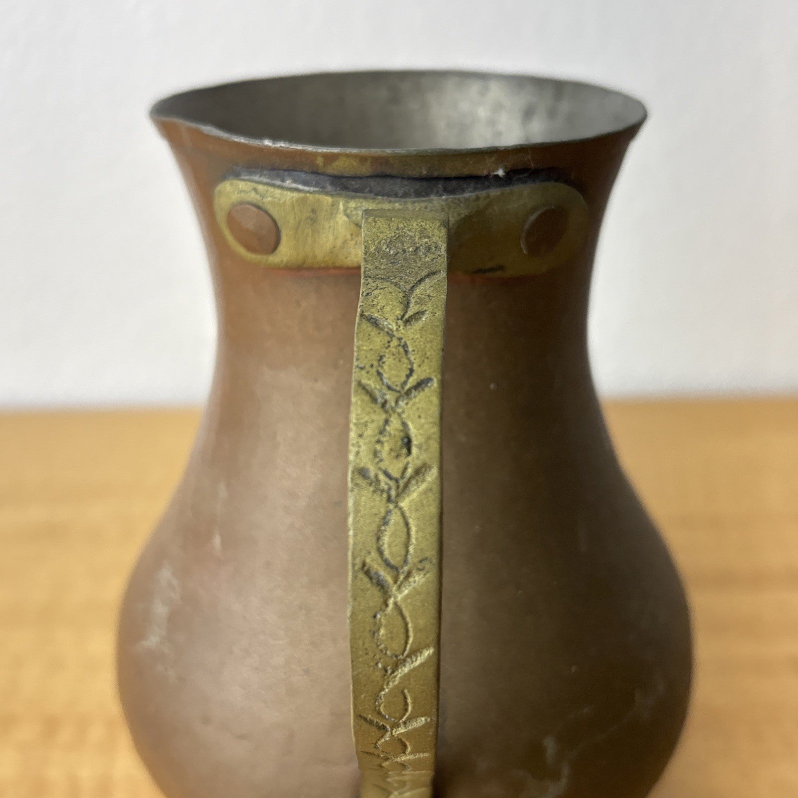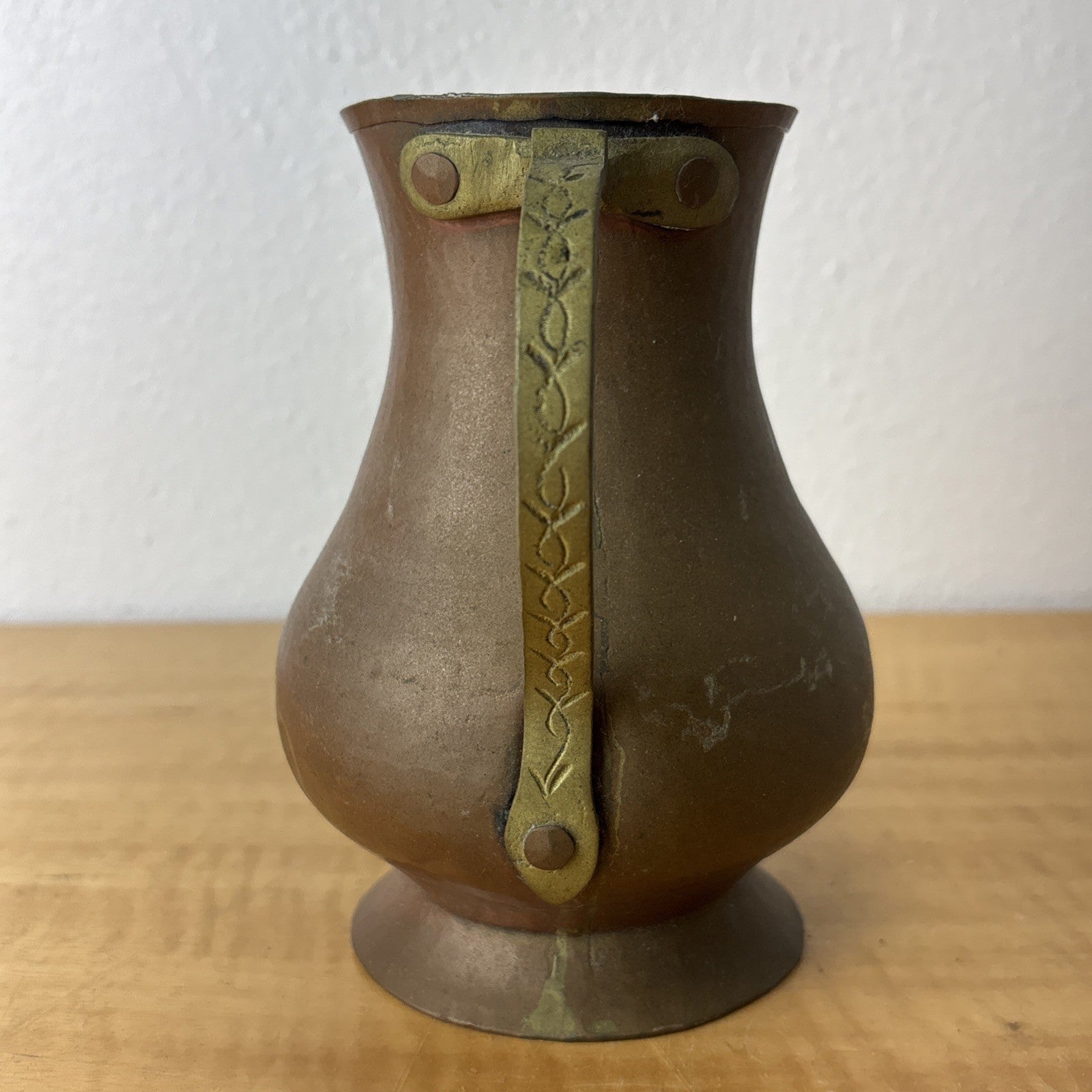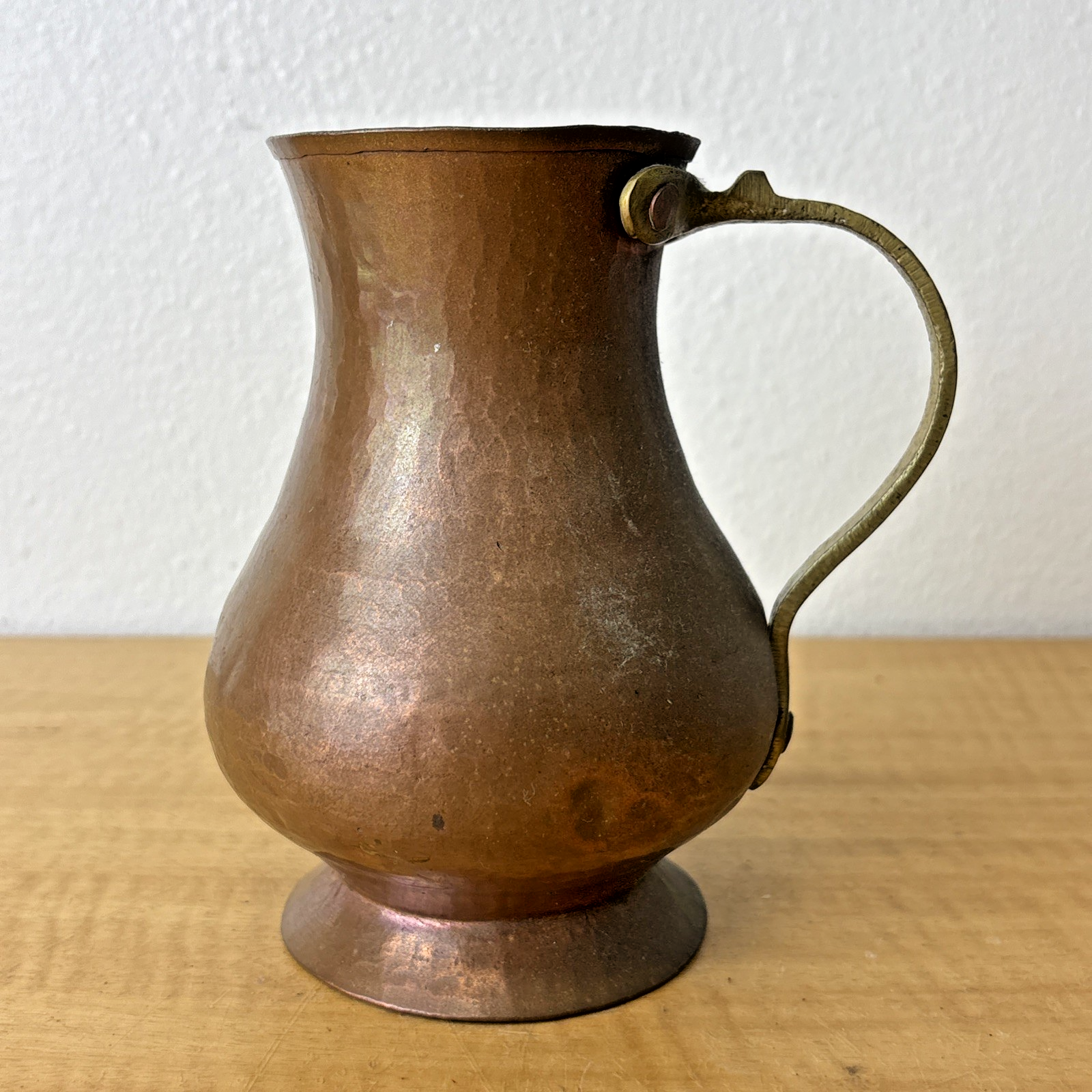 Vintage Brass Handcrafted Hammered Copper Drinking Pitcher Cottage Rustic