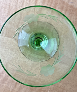 Vintage Champagne/Sherbet Clear Needle Etched Pattern Green Uranium Glass