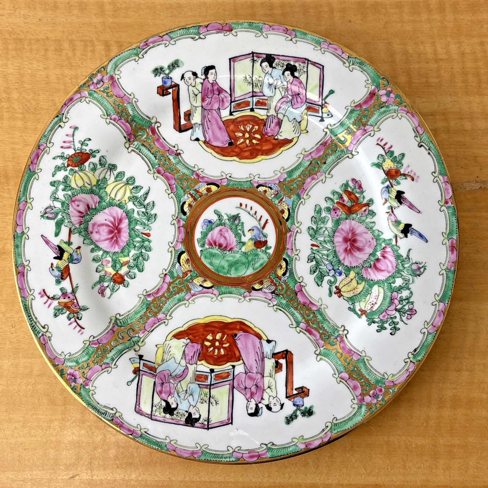 Vintage Chinese Porcelain Medallion Rose Hand Painted Plate – 10.25″