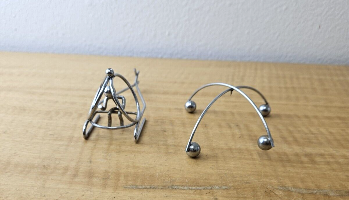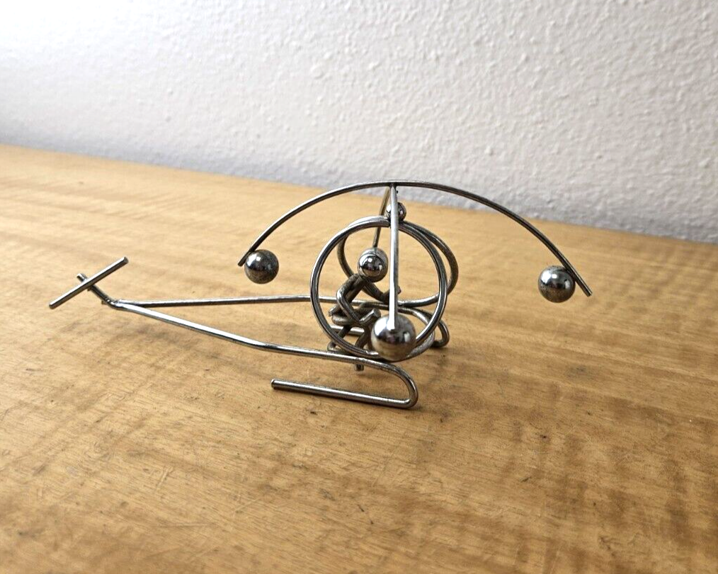 Vintage Chrome Kinetic Helicopter Balancing Sculpture 2 Pieces
