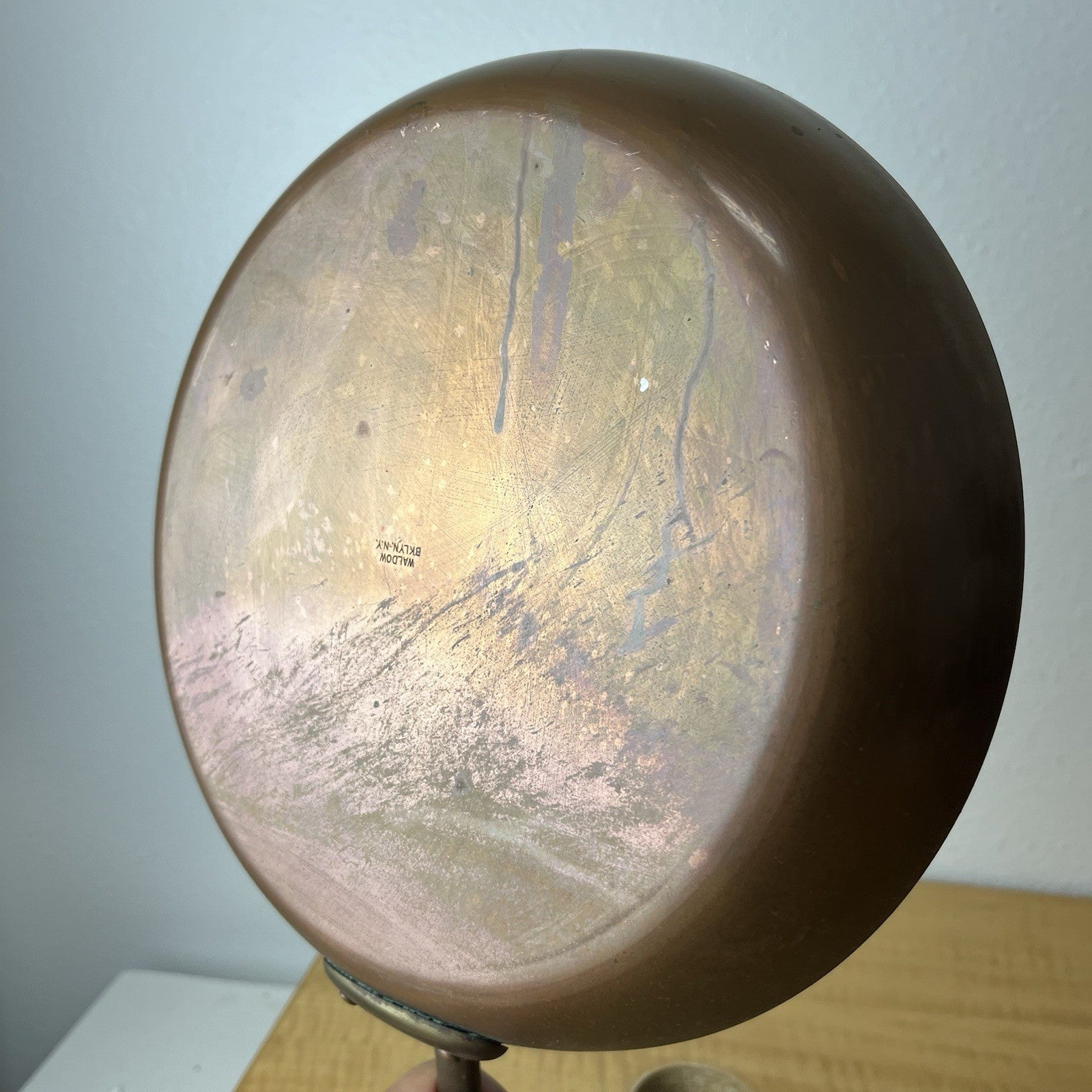 Vintage Copper Waldow BKLYN NY 10” Frying Pan Brass Handles #26