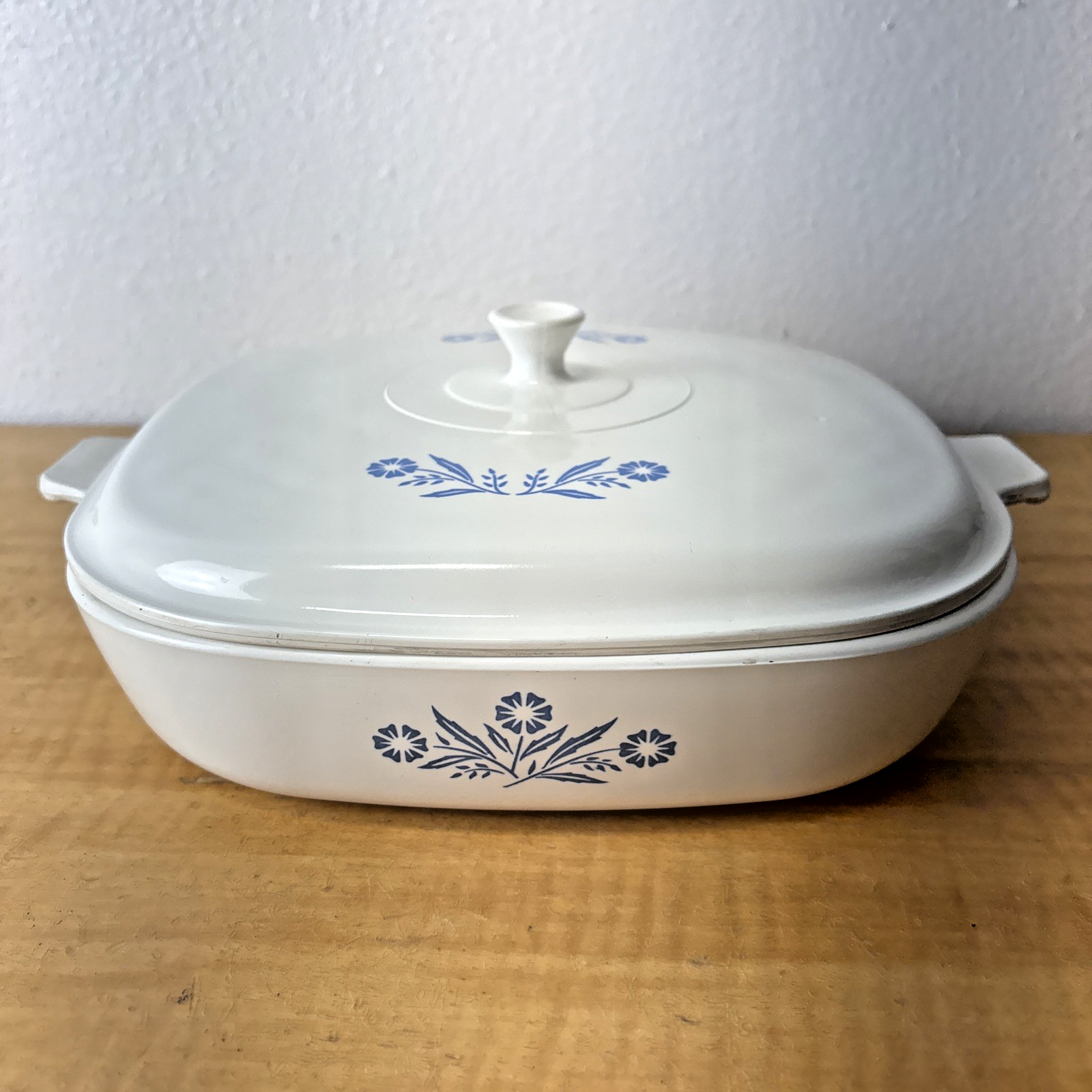Vintage Corning Ware BLUE CORNFLOWER CASSEROLE Skillet w Pyroceram Lid USA