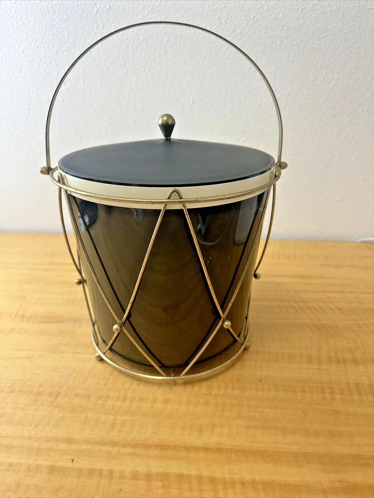 Vintage MCM Thermos Insulated Ice Bucket Tub Model 9940 Style 45 Black w/ Metal
