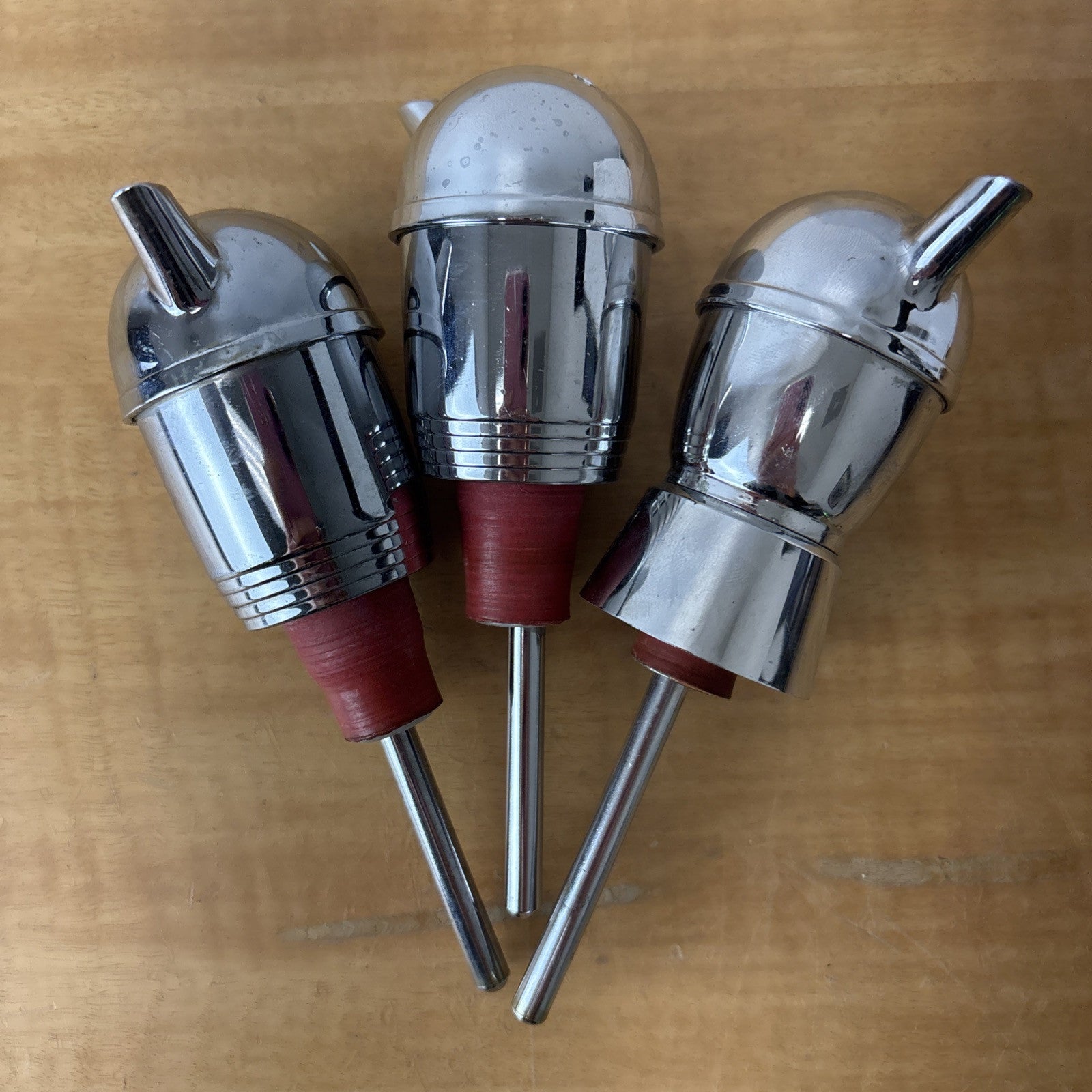 Vintage Mid-Century Modern Chrome Drink Liquor Bottle Shot Pourer Spout Lot of 3