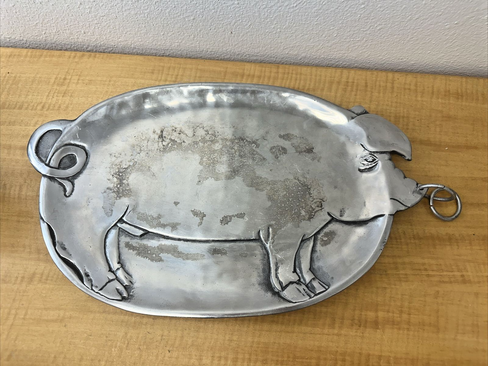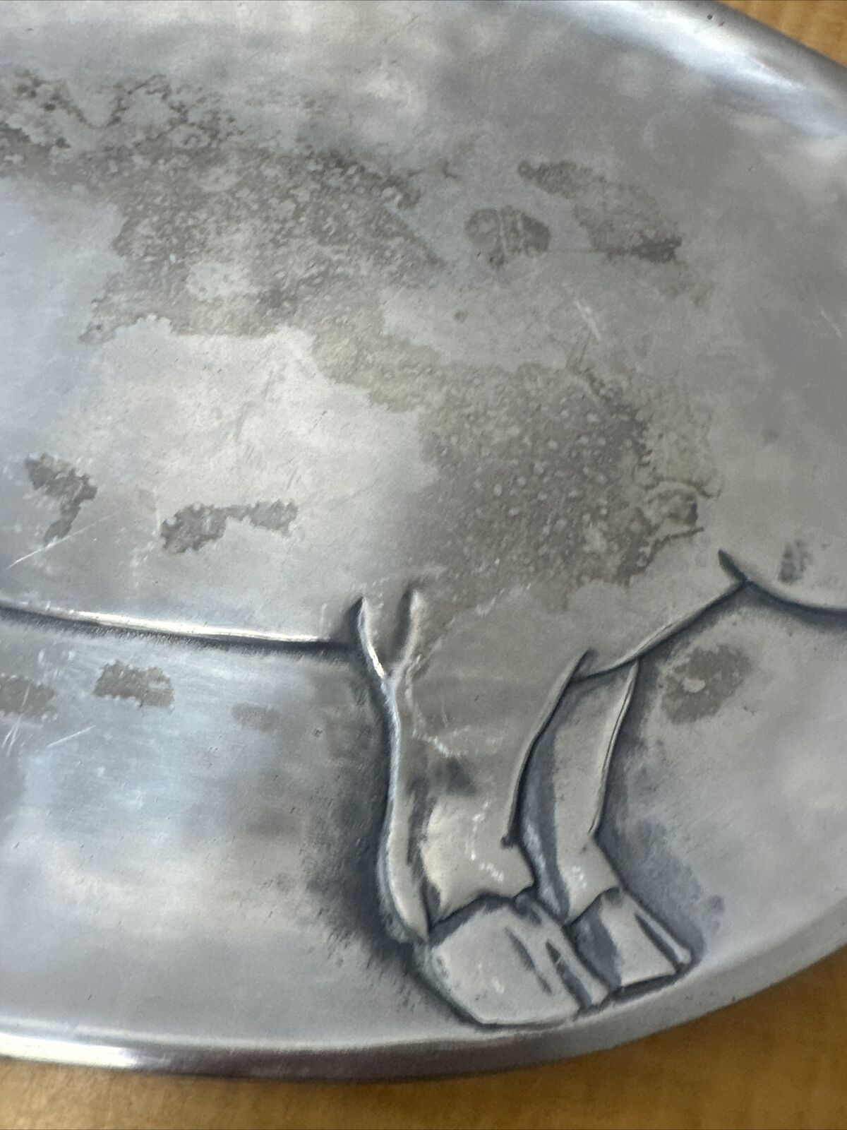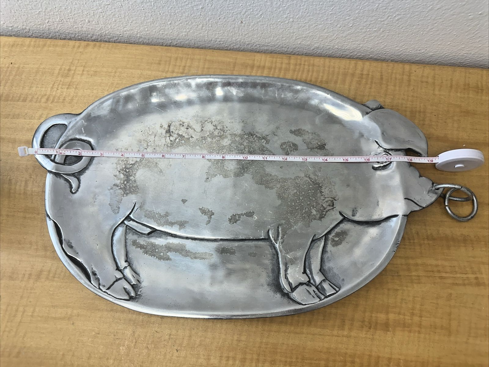 Vintage Pewter Pig Tray Platter Cast Craft, Columbia, Pa, ~ 1970s ~18″ Long