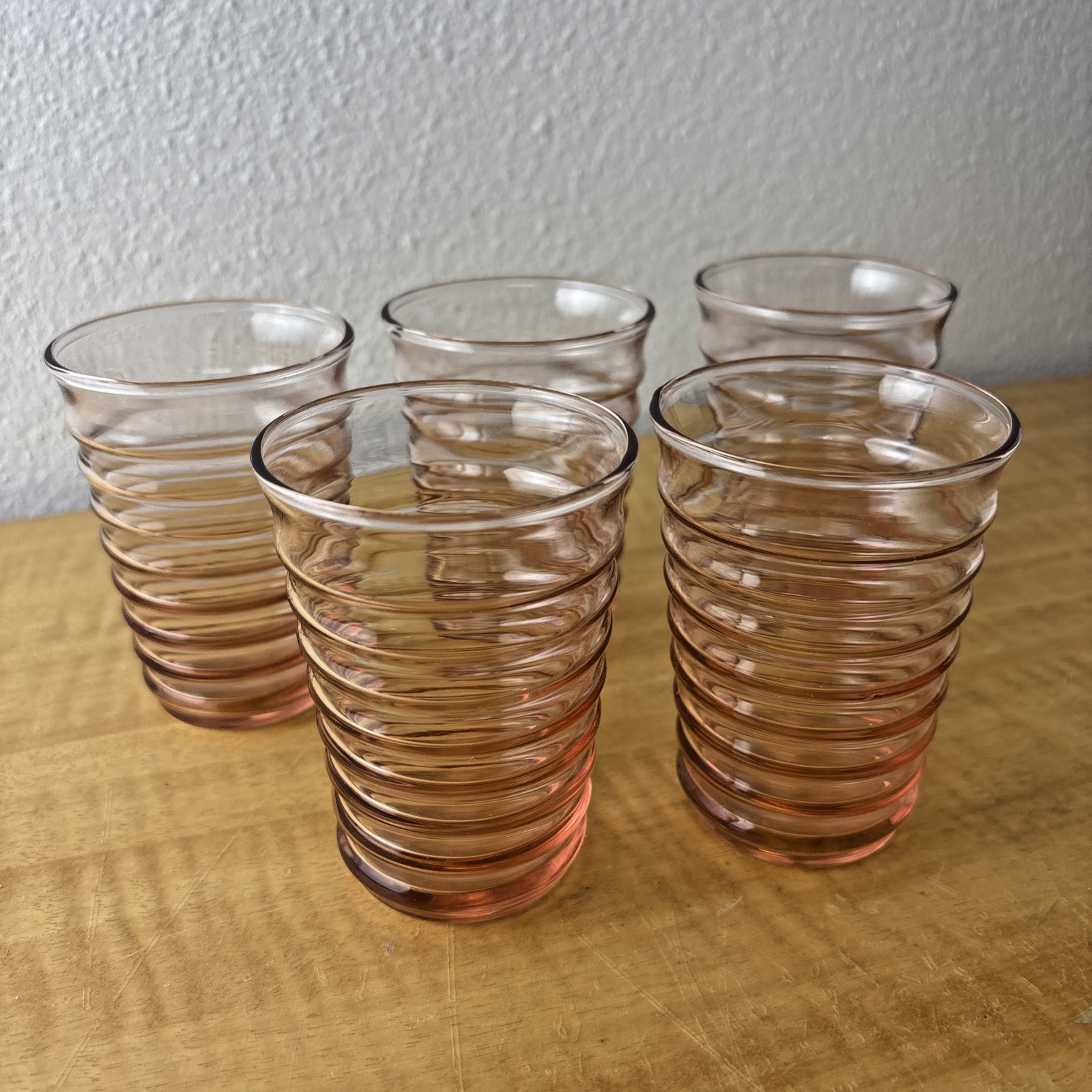 Vintage Pink Depression Glass Rib Optic Water Juice Tumblers Set of 5