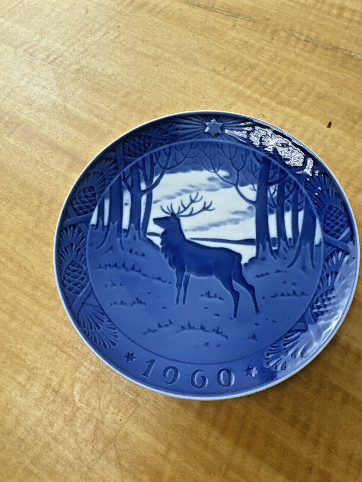 Vintage Royal Copenhagen Collectible Blue Christmas Plate 1960 – The Stag