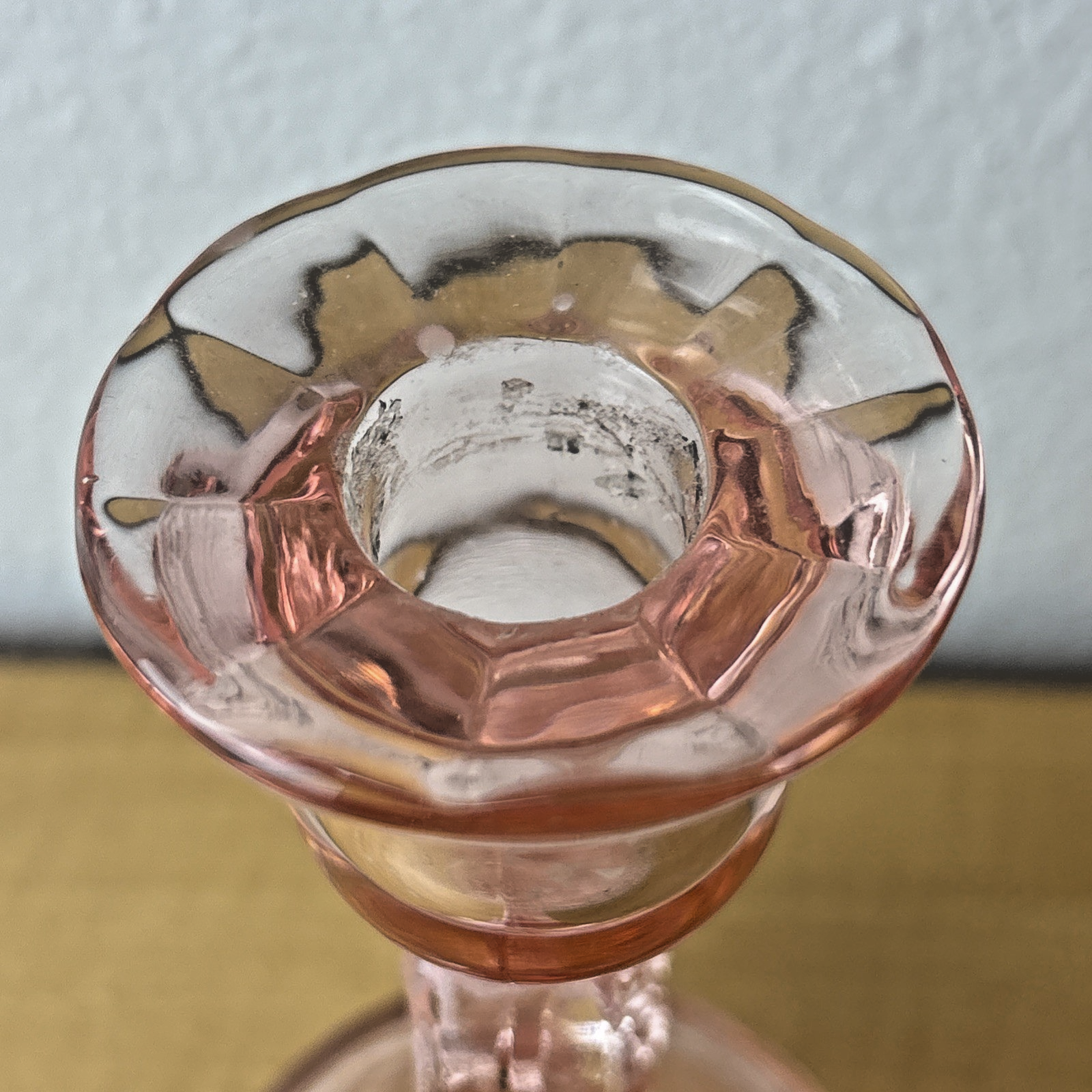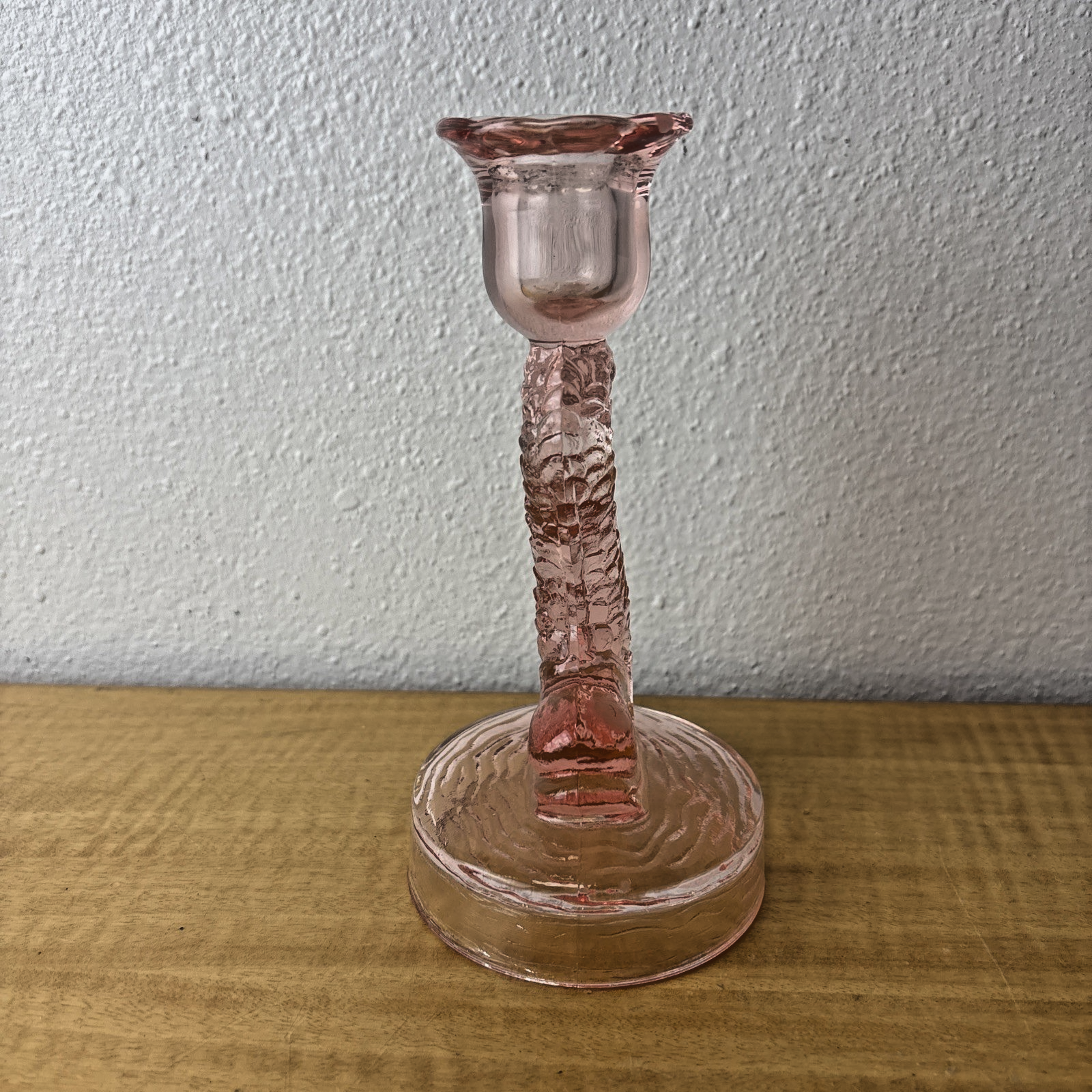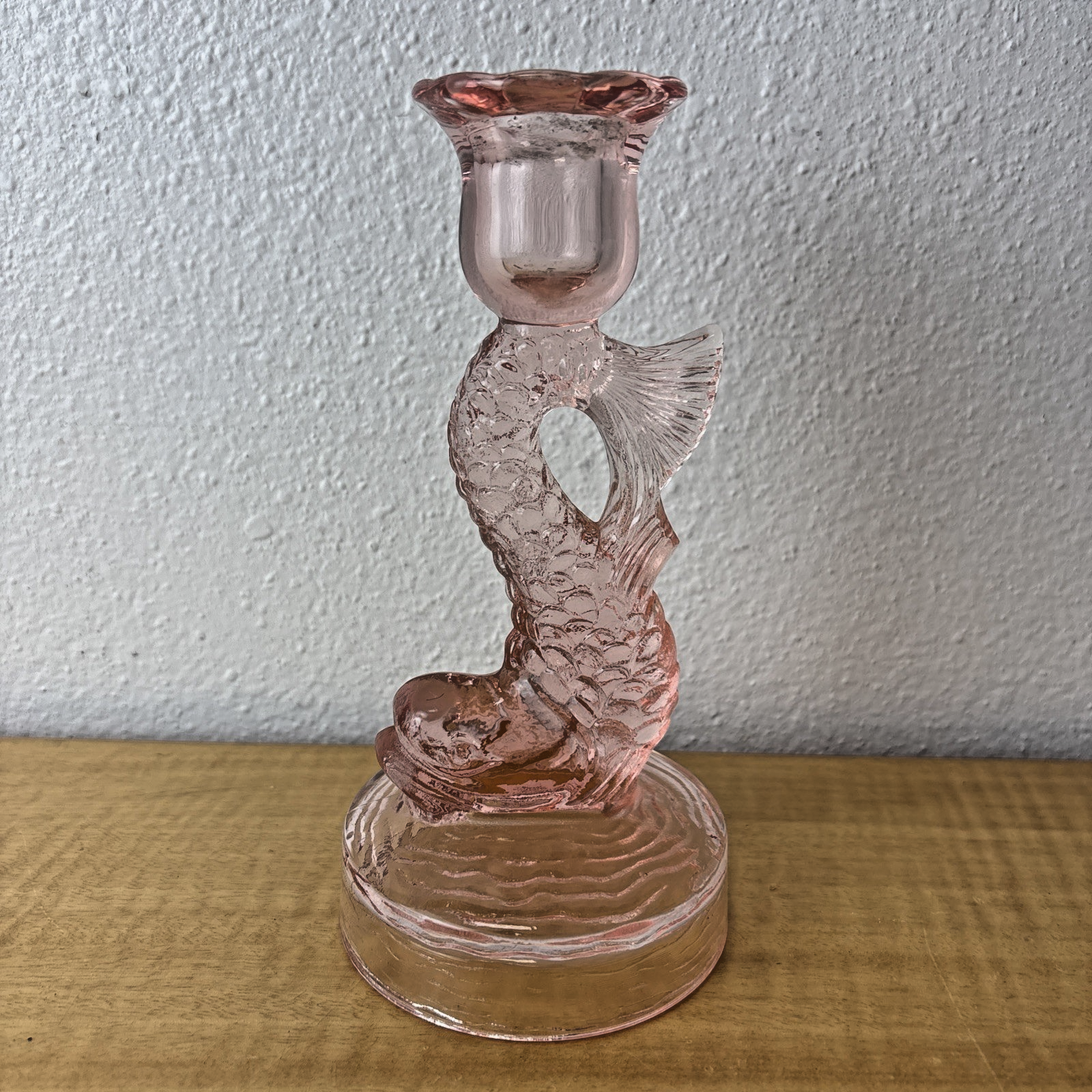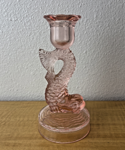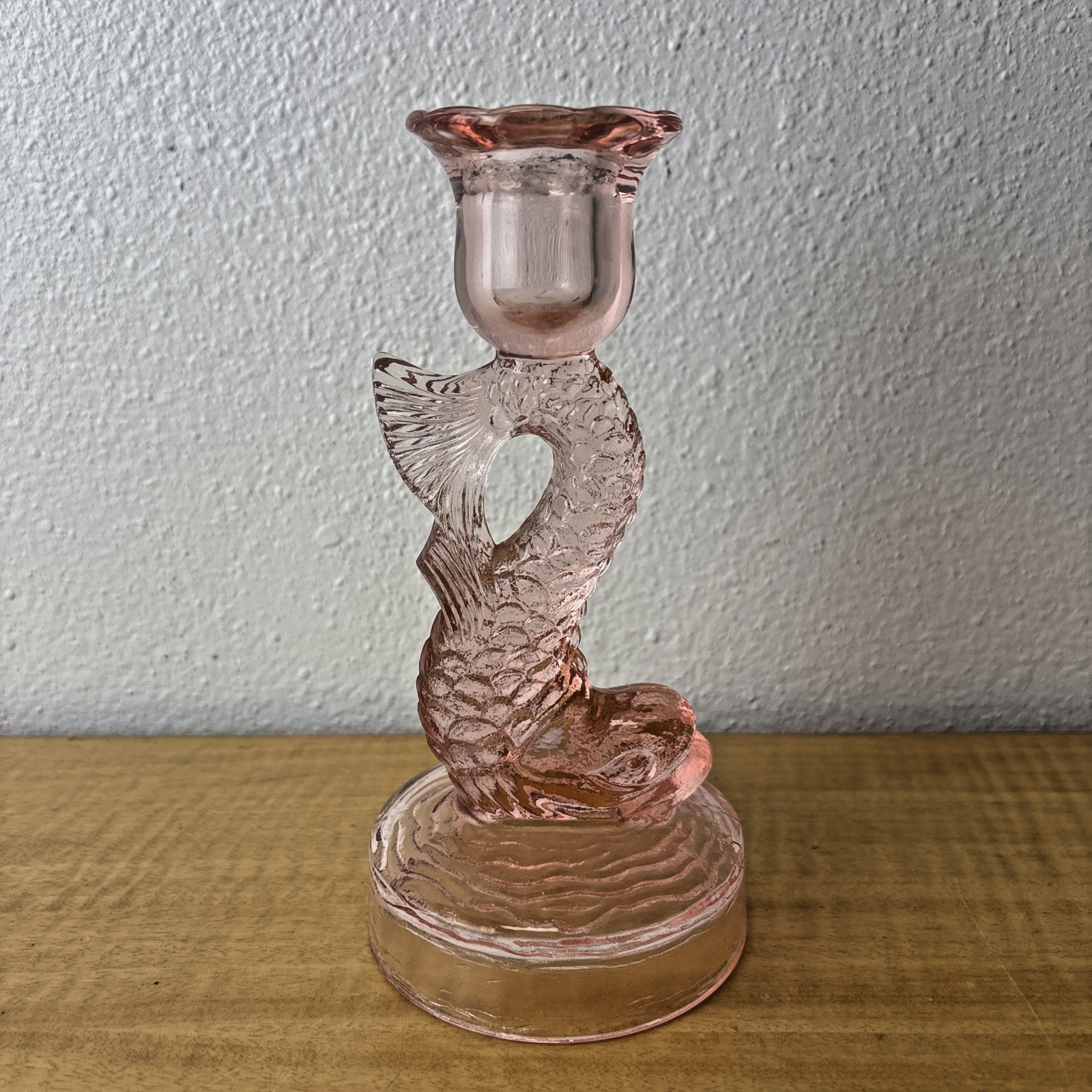 Vintage Tiffin Pink Depression Glass Dolphin Koi Fish Candlestick Holder