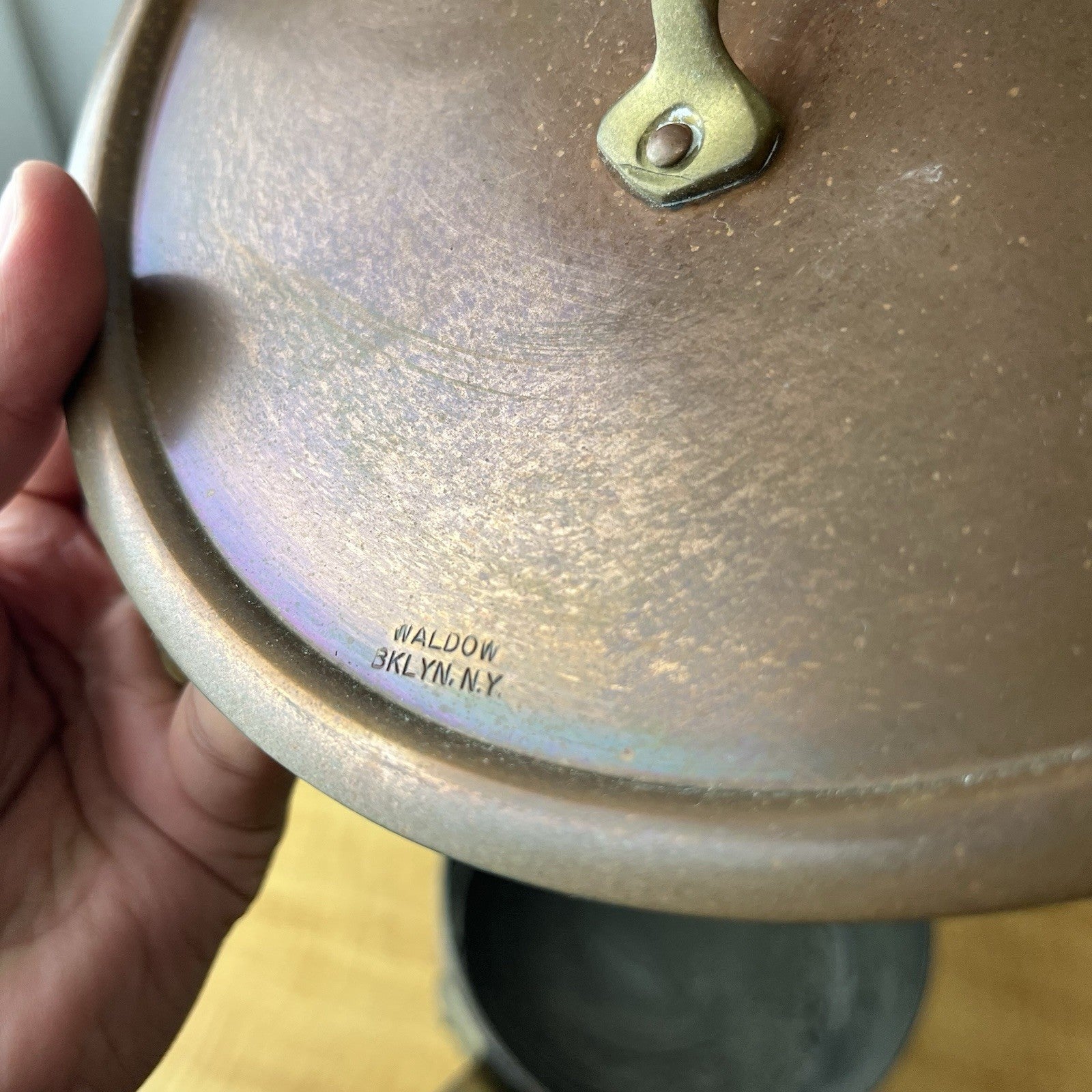 Vintage Waldow Brooklyn NY #18 Copper Saucepan 7.5″ Brass Handle w Lid