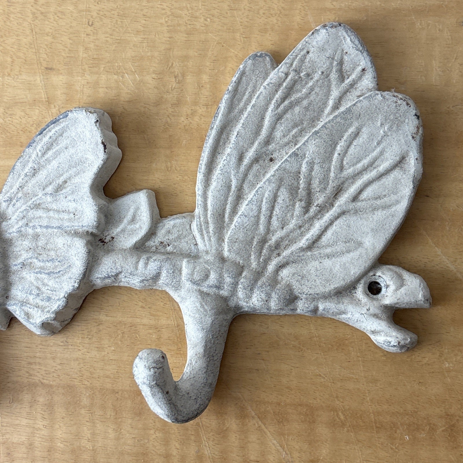 Vintage Wall Hanging Hooks Butterfly 15″ Long Charcoal Gray Dragonfly Cast Iron